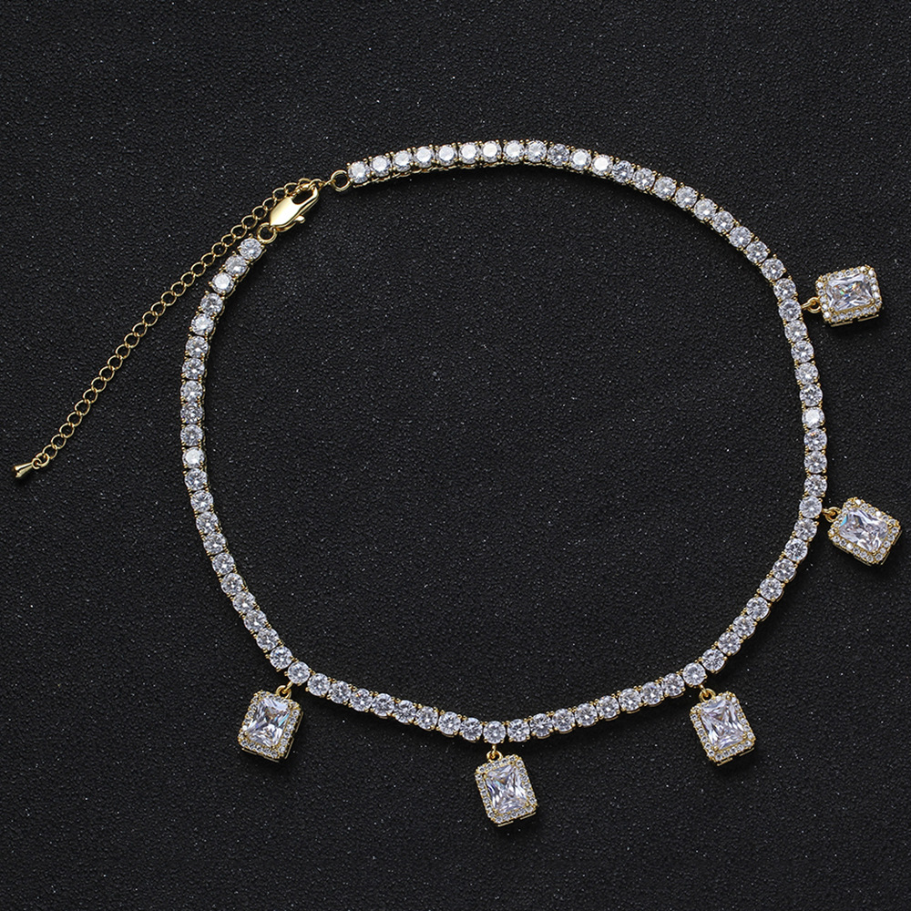 Hip Hop Copper Inlaid Zircon Tennis Chain 5mm Single Row Chain 5 Square Pendant 36cm + 7.6cm Extension Chain Necklace