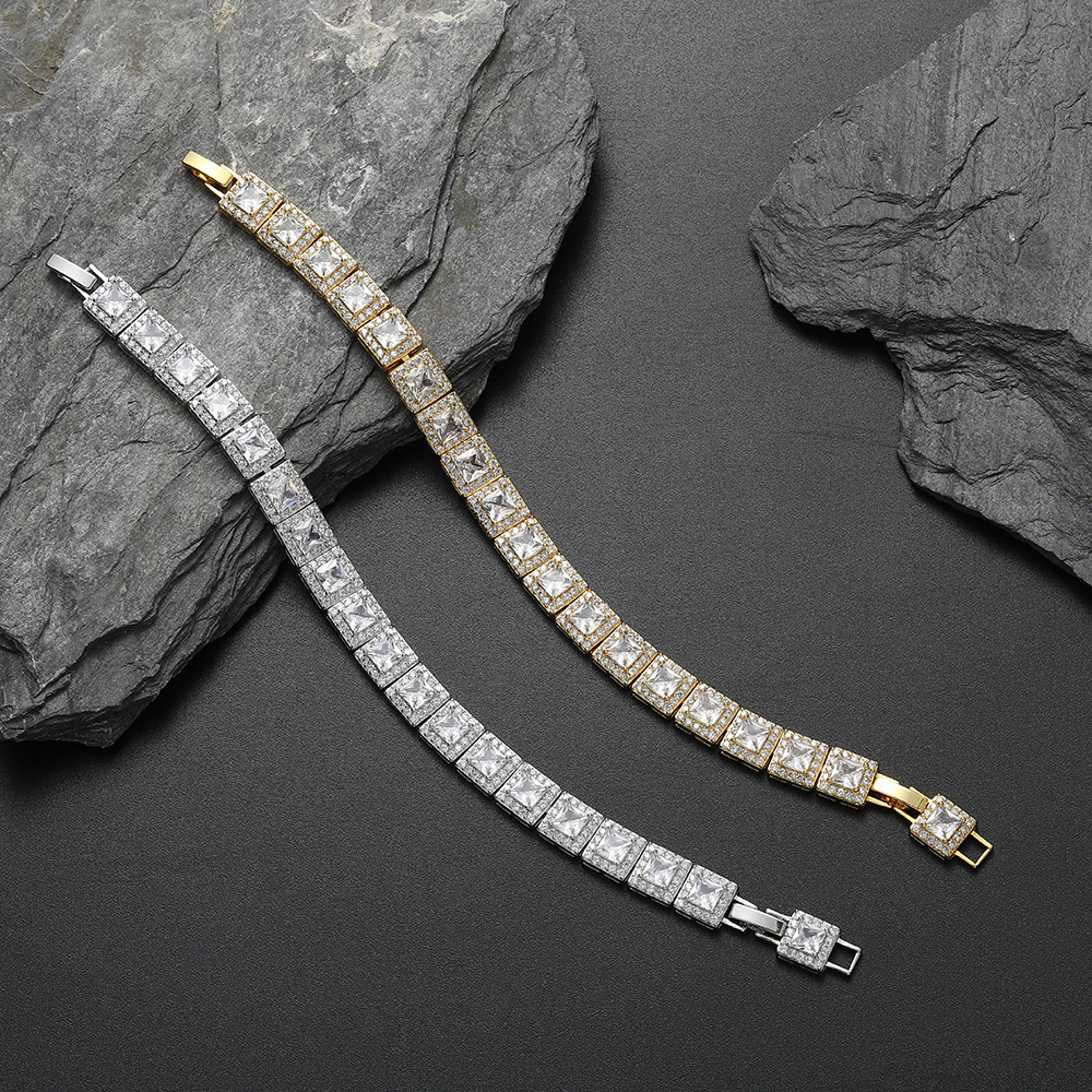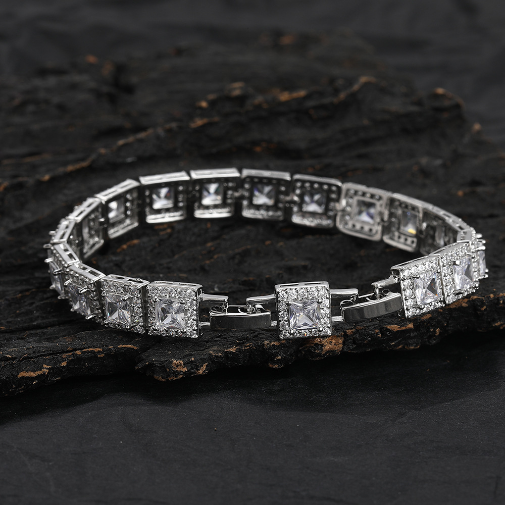 Hip Hop Copper Inlaid Zircon Tennis Chain 9mm Square Single Row Chain Bracelet