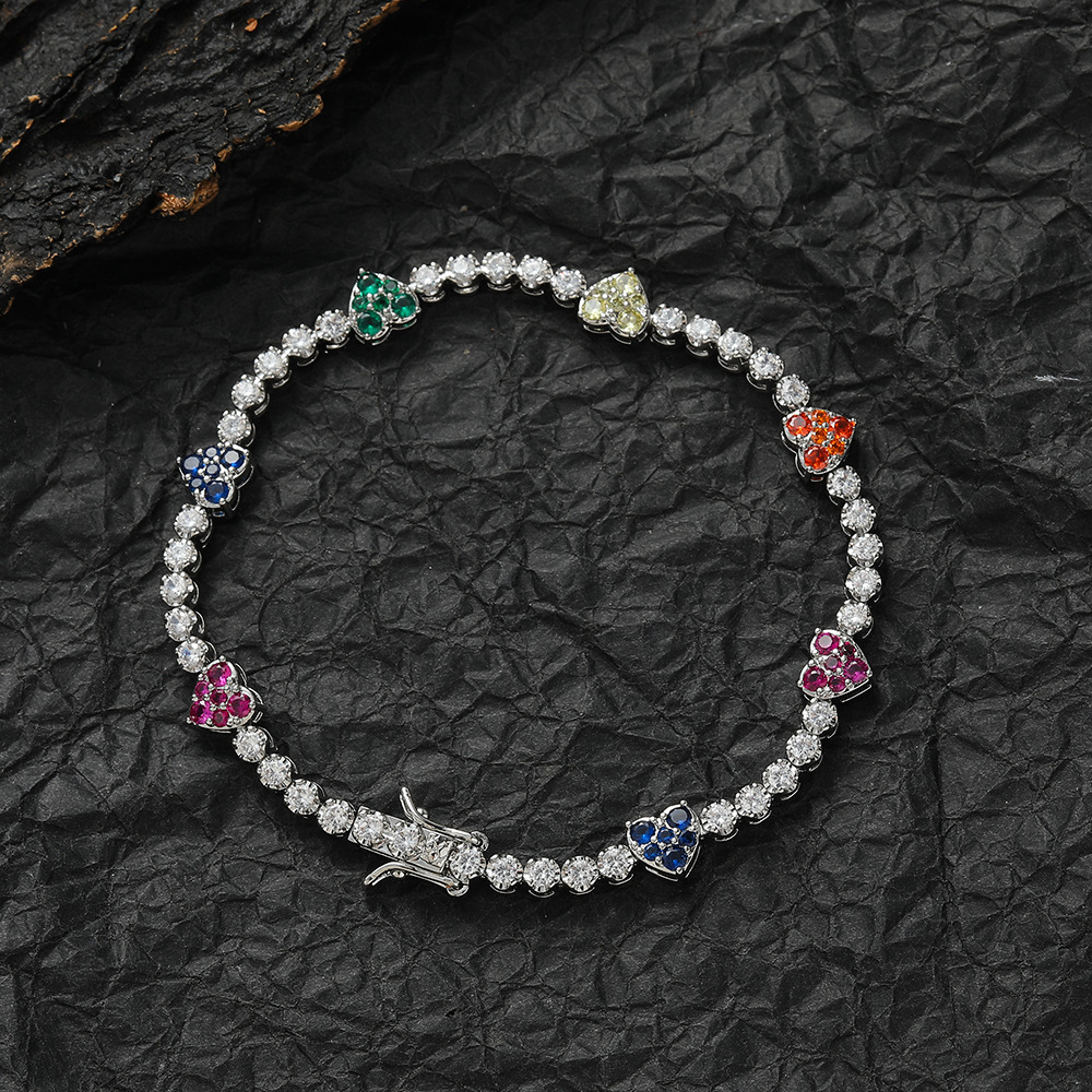 Hip Hop copper inlaid zircon tennis chain colorful heart-shaped single-row bracelet
