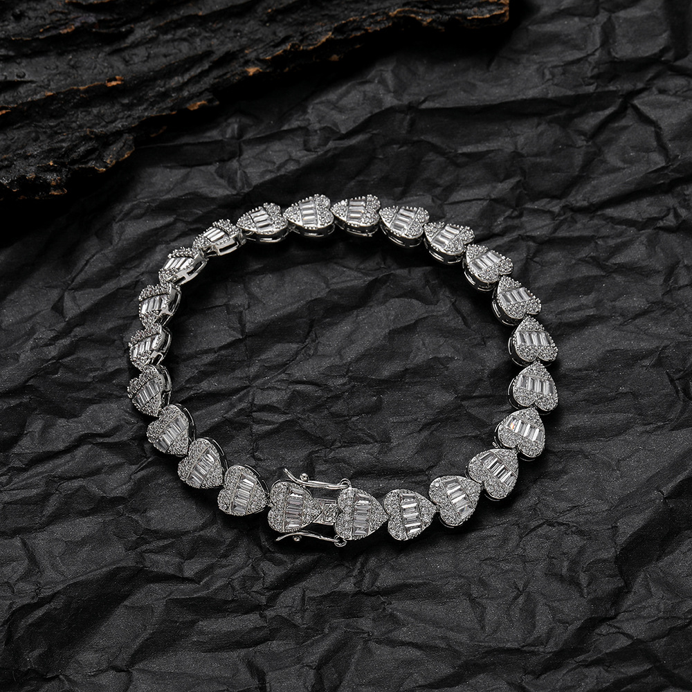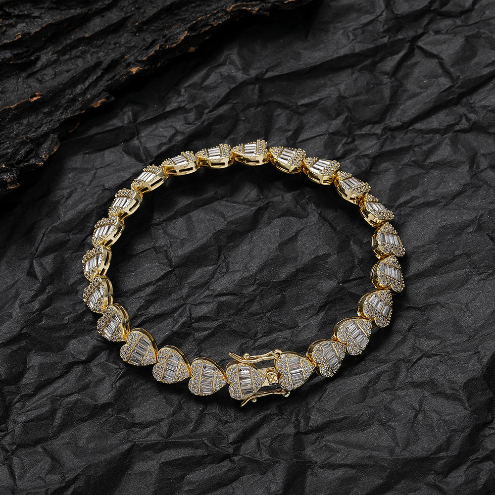 Hip Hop copper inlaid zircon tennis chain love single row chain bracelet