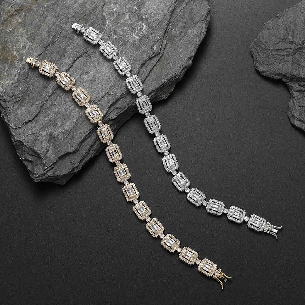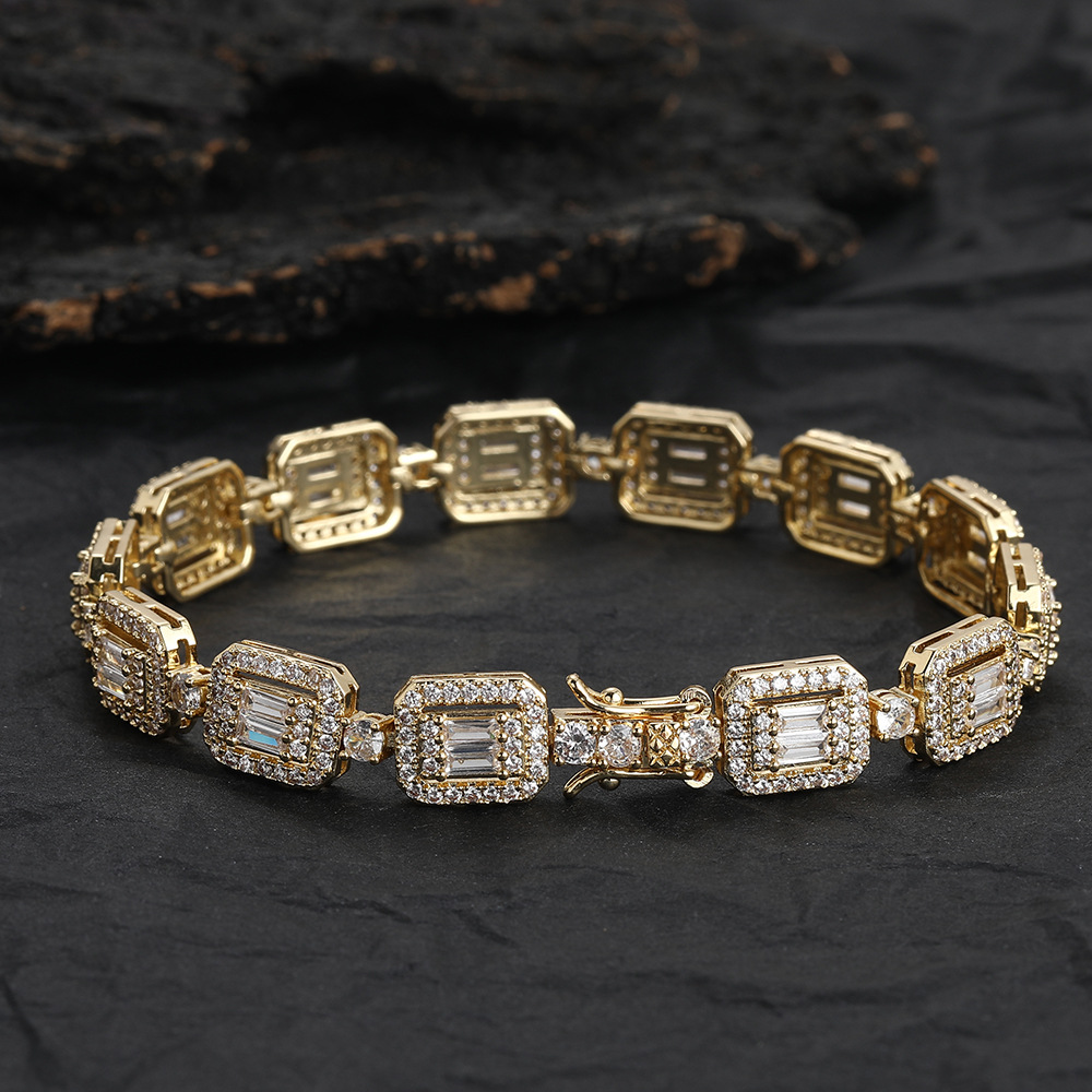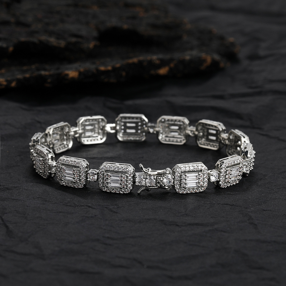 Hip Hop copper inlaid zircon tennis chain rectangular openwork single-row bracelet