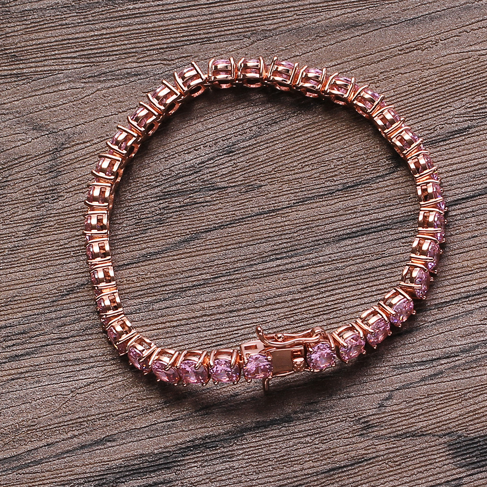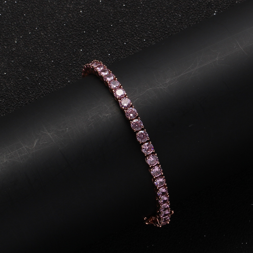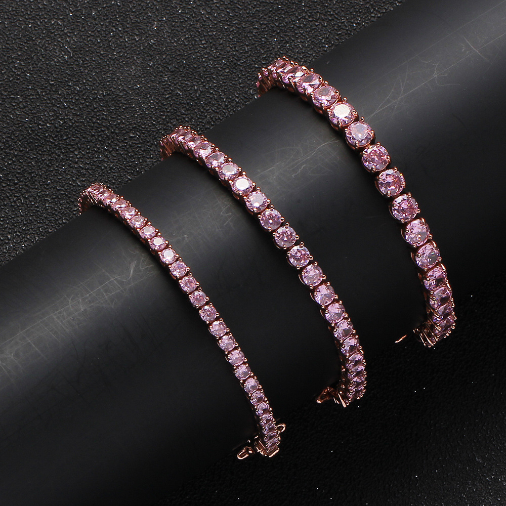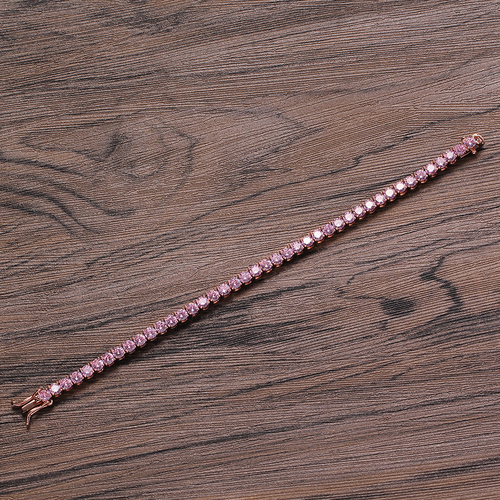 Hip Hop Copper Inlaid Zircon Tennis Chain Rose Gold Pink Zircon 3mm4mm5mm Single Row Bracelet