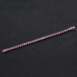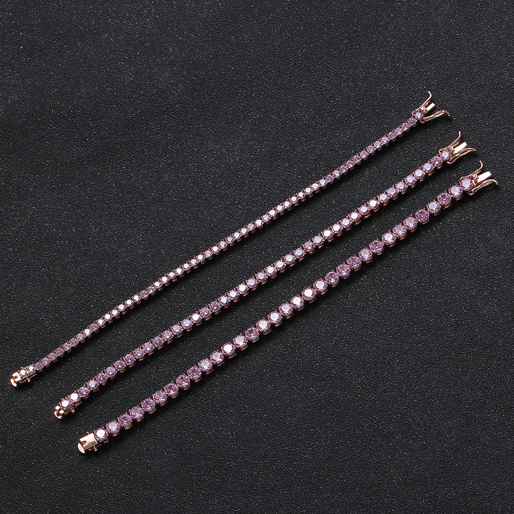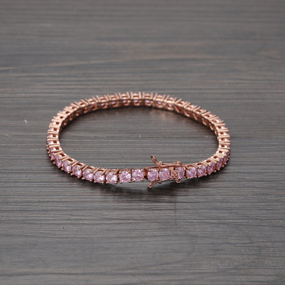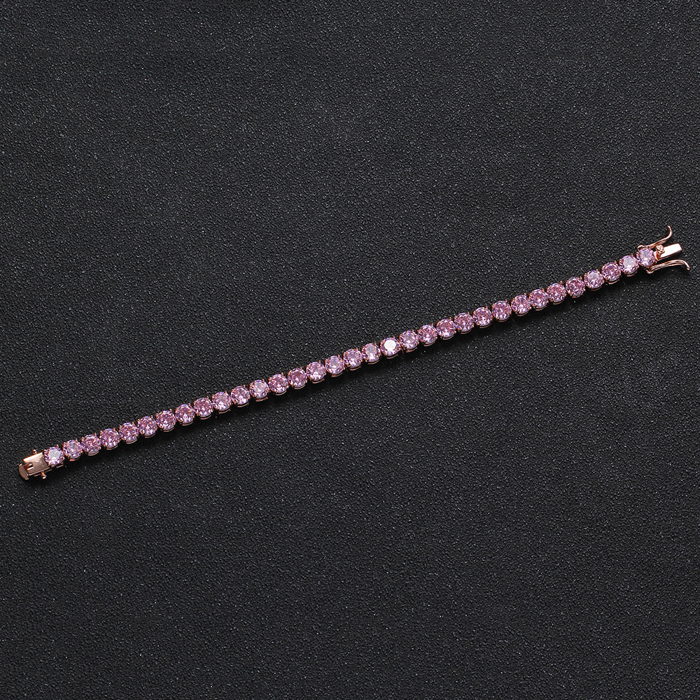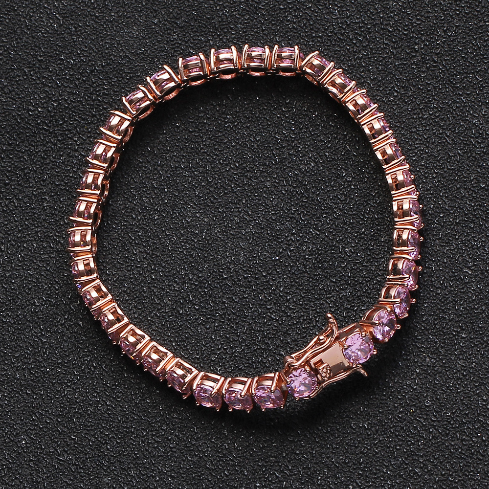 Hip Hop Copper Inlaid Zircon Tennis Chain Rose Gold Pink Zircon 3mm4mm5mm Single Row Bracelet