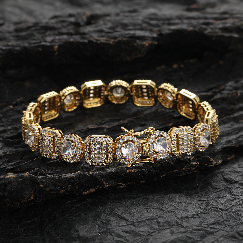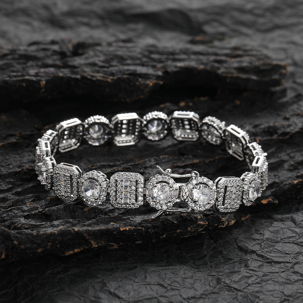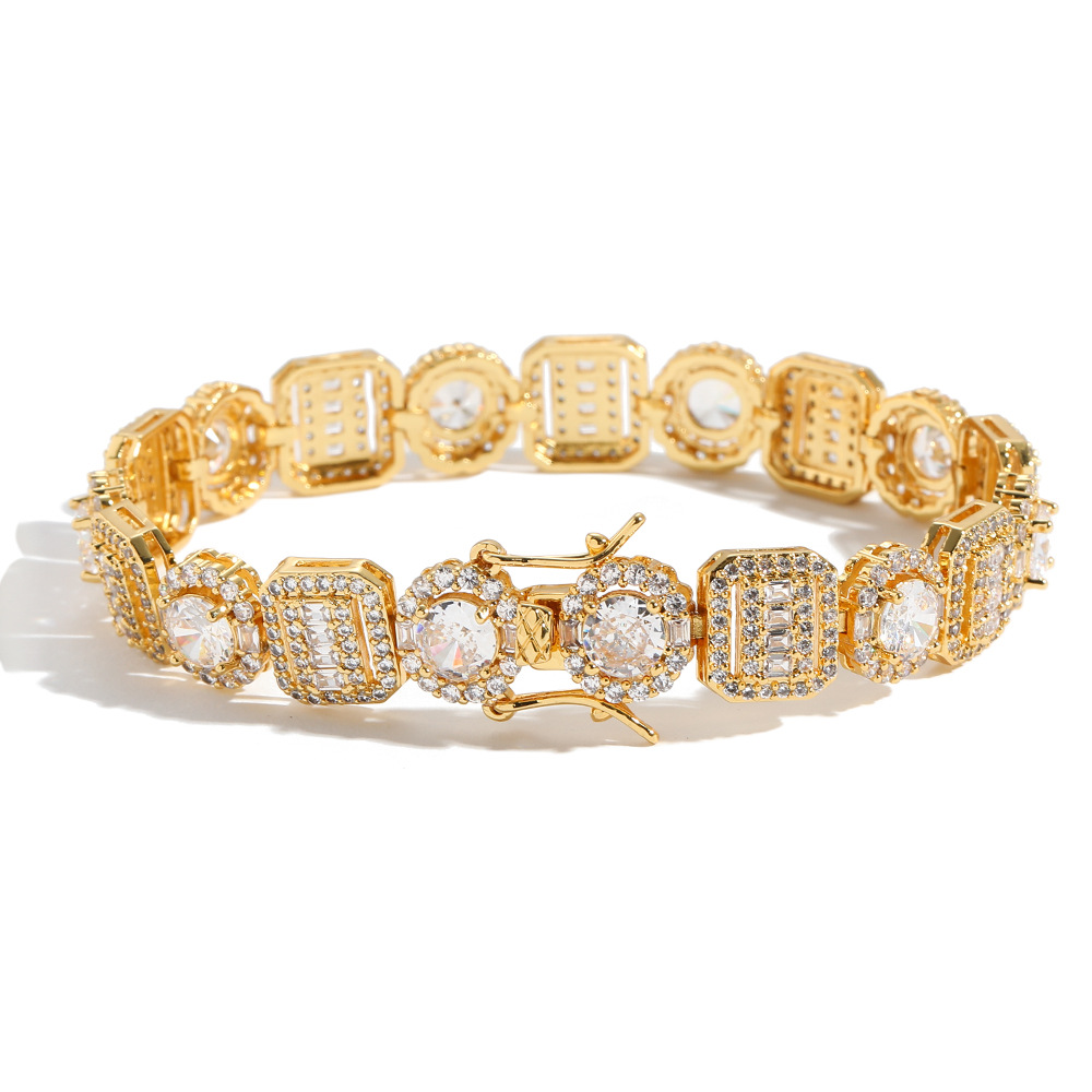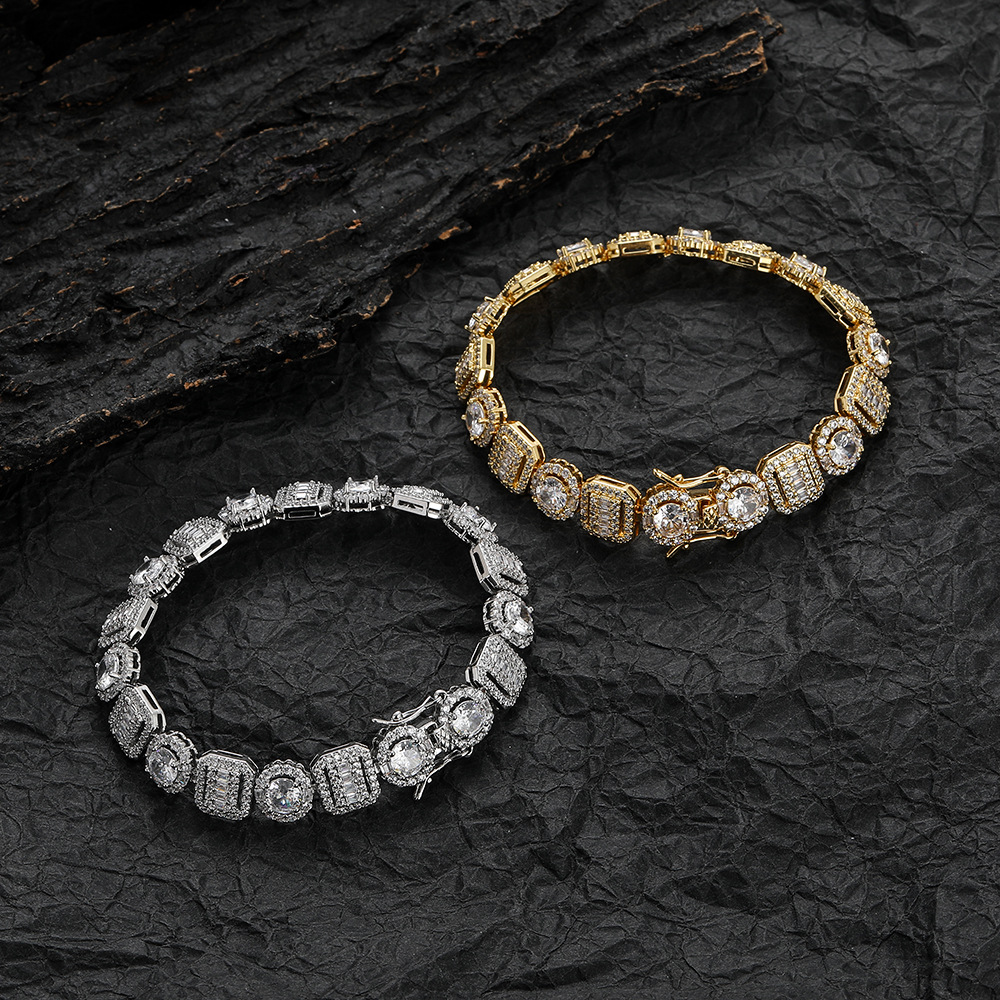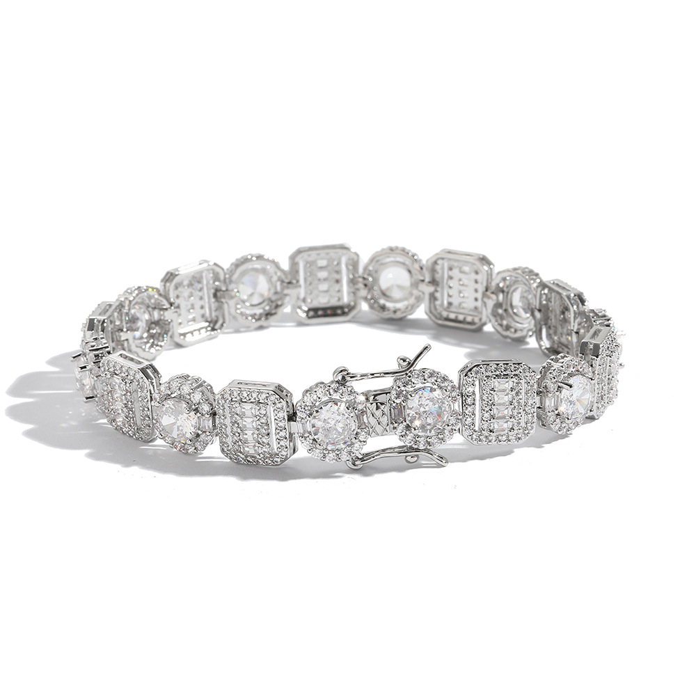 Hip Hop copper inlaid zircon tennis chain square round single row chain bracelet