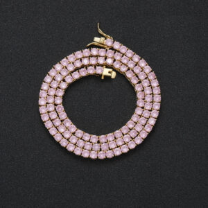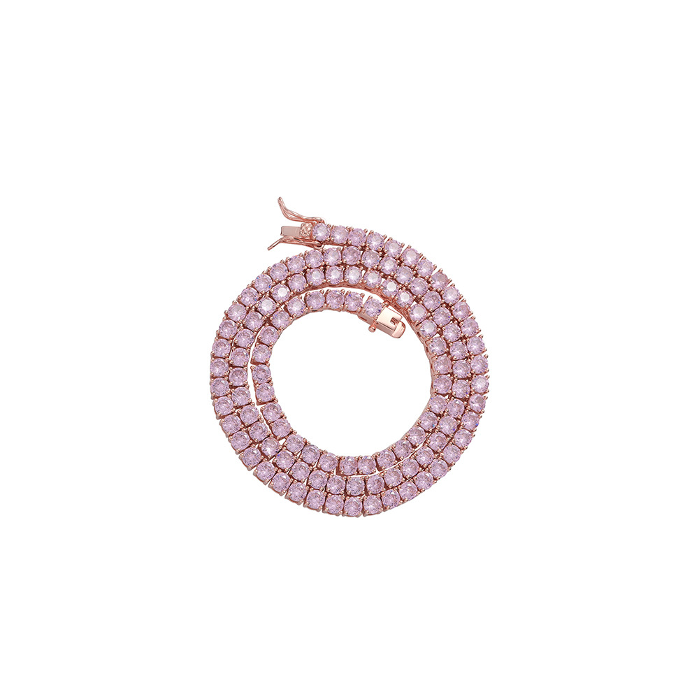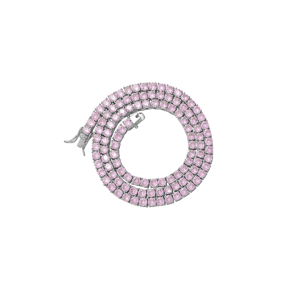 Hip Hop Copper Inlay Zircon Tennis Chain 4mm Pink Single Row Chain Necklace