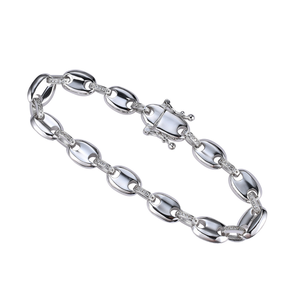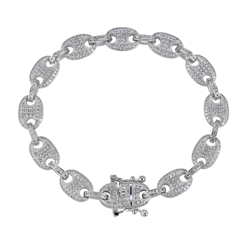 Hip Hop Cuban Bracelet 9mm Copper Inlaid Zircon Coffee Bean Shape Bracelet