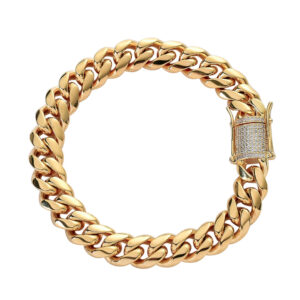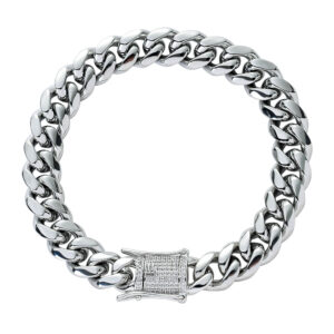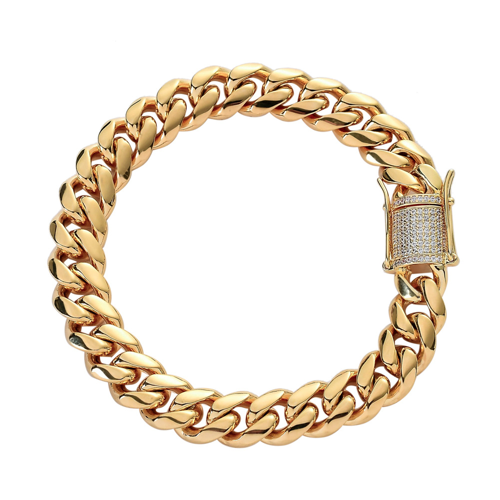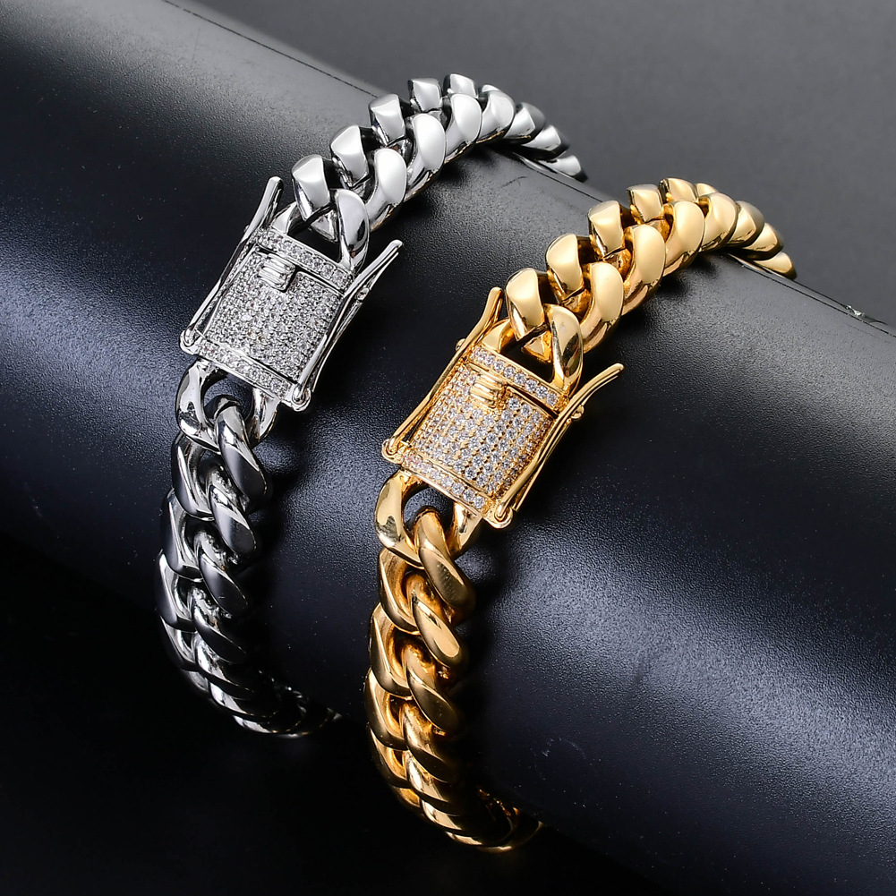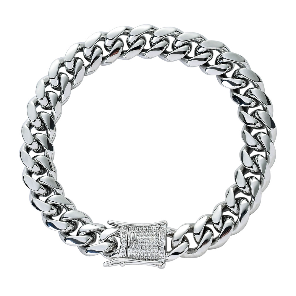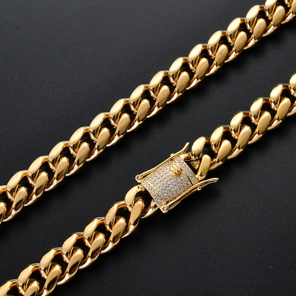 10mm Men’s Stainless Steel Round Grinding Cuban Necklace Copper Micro-Inlaid Buckle Hip Hop Jewelry