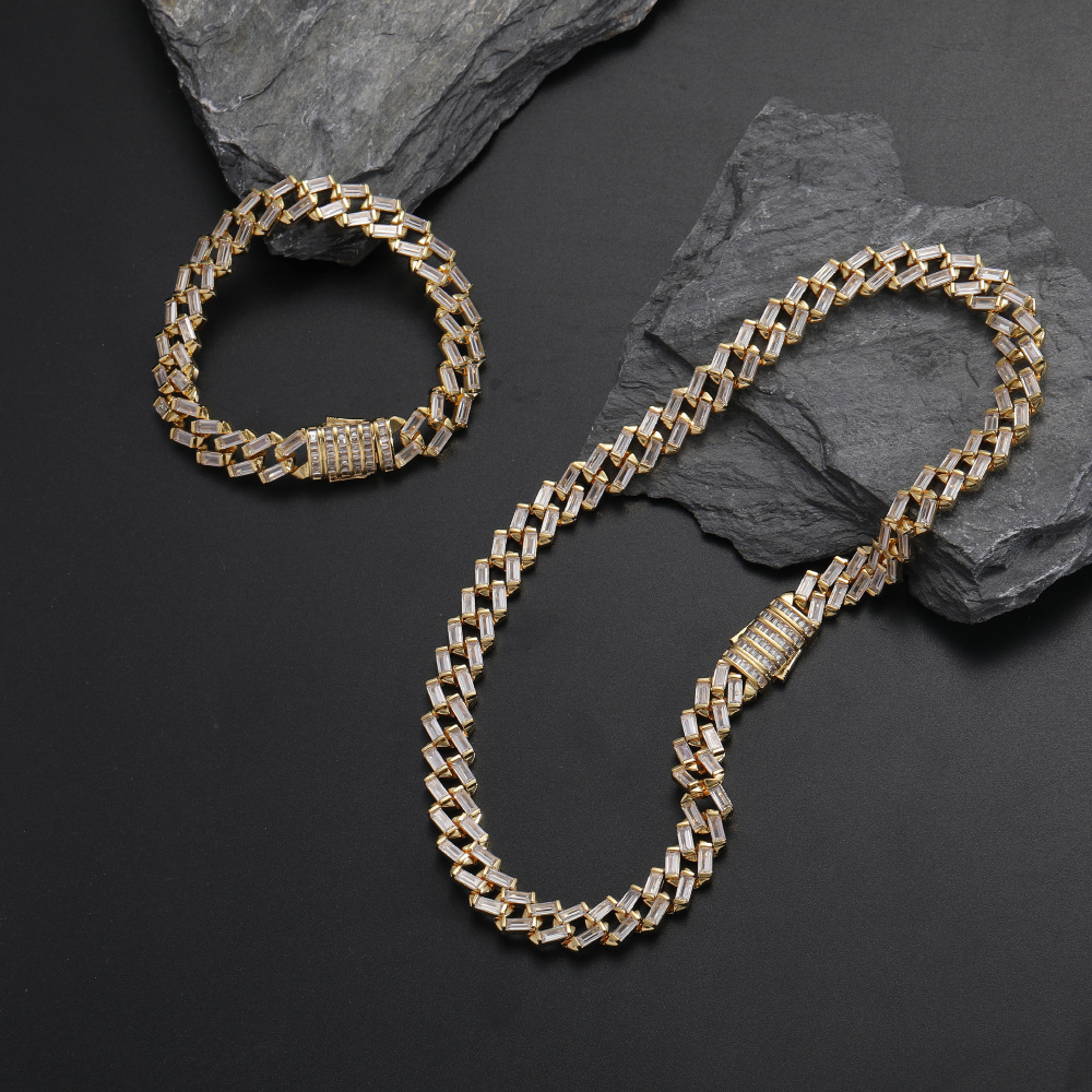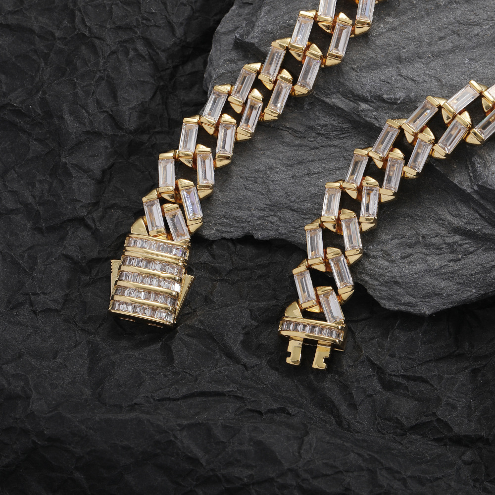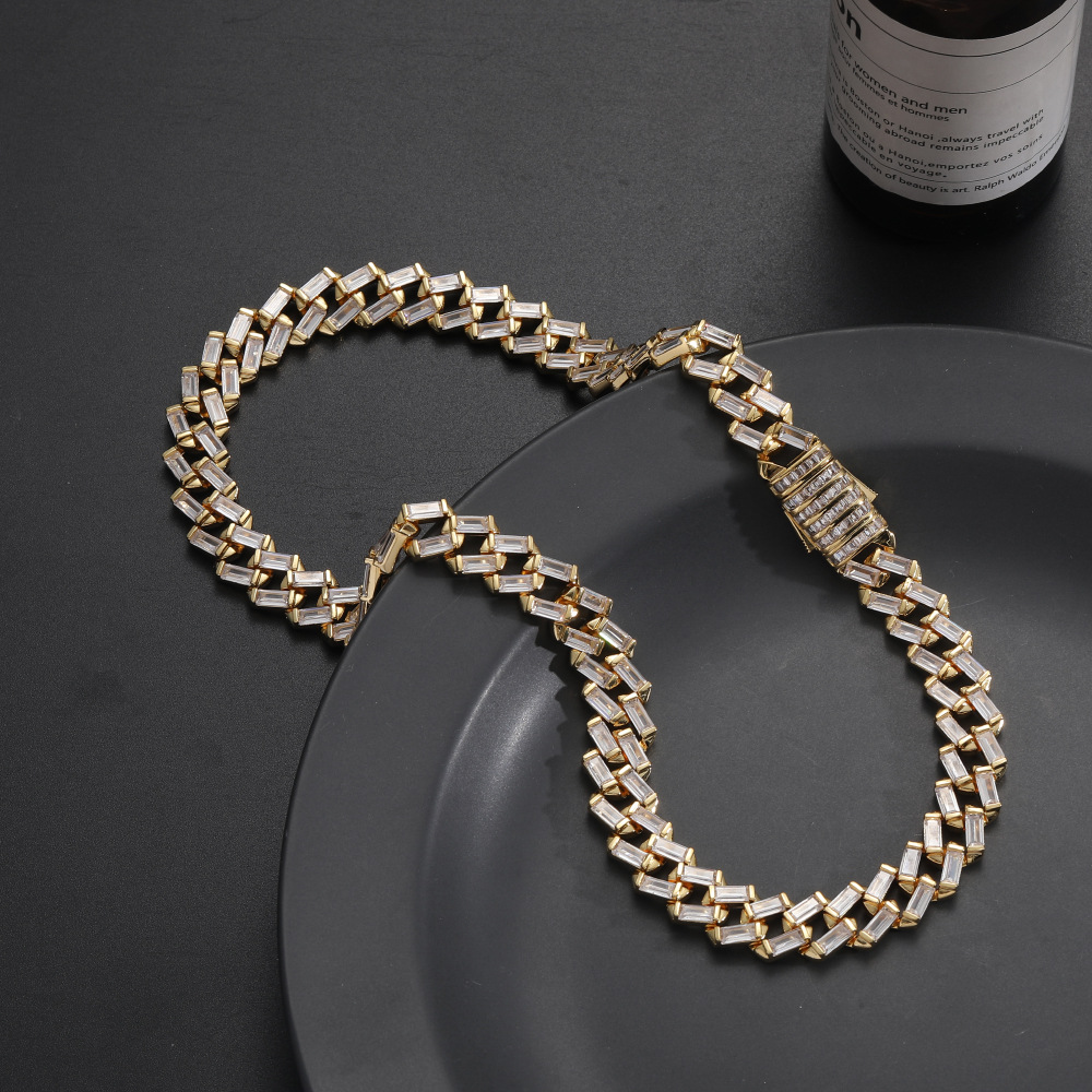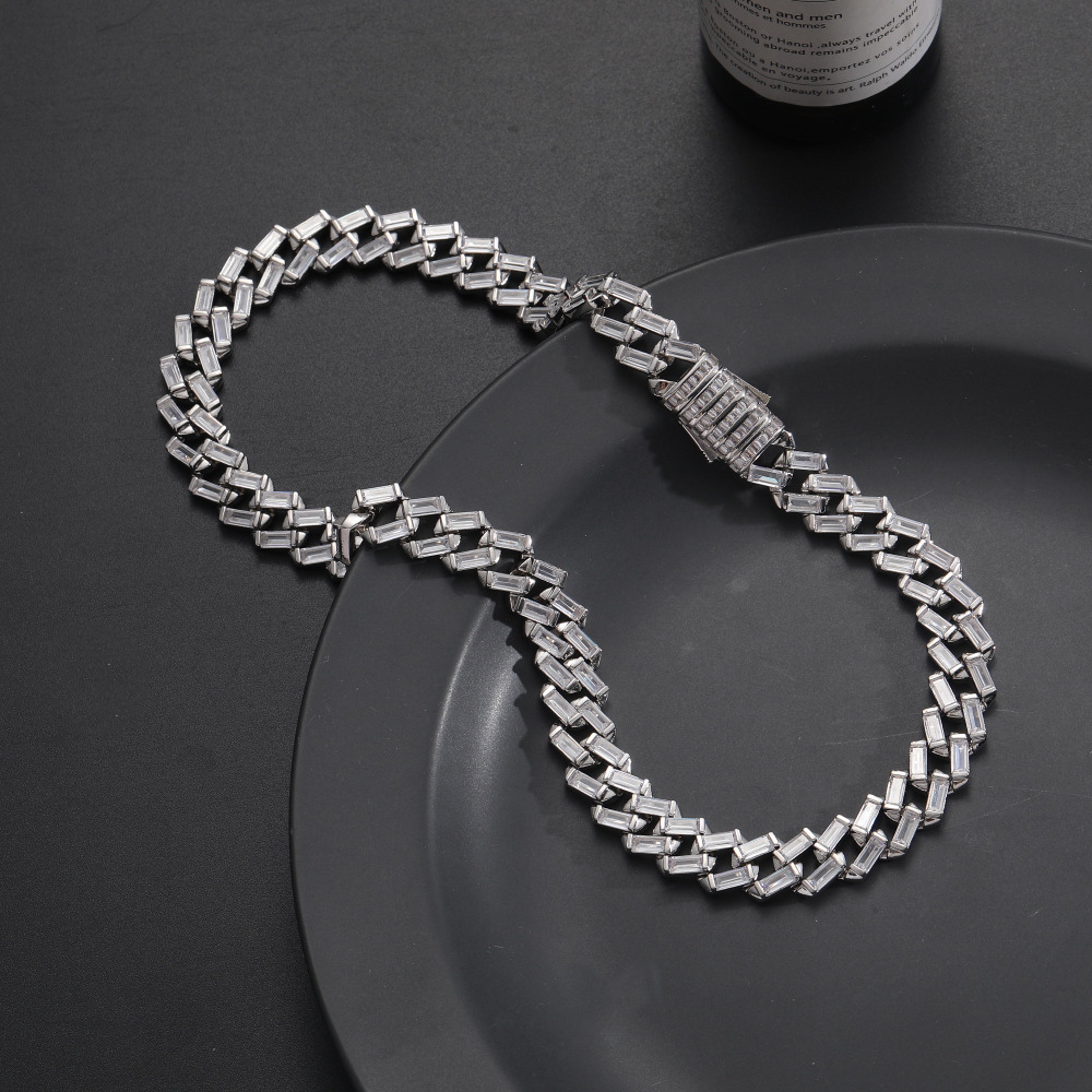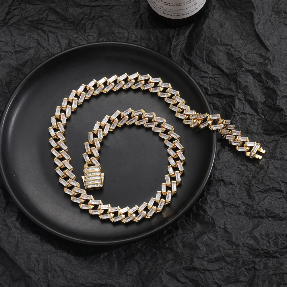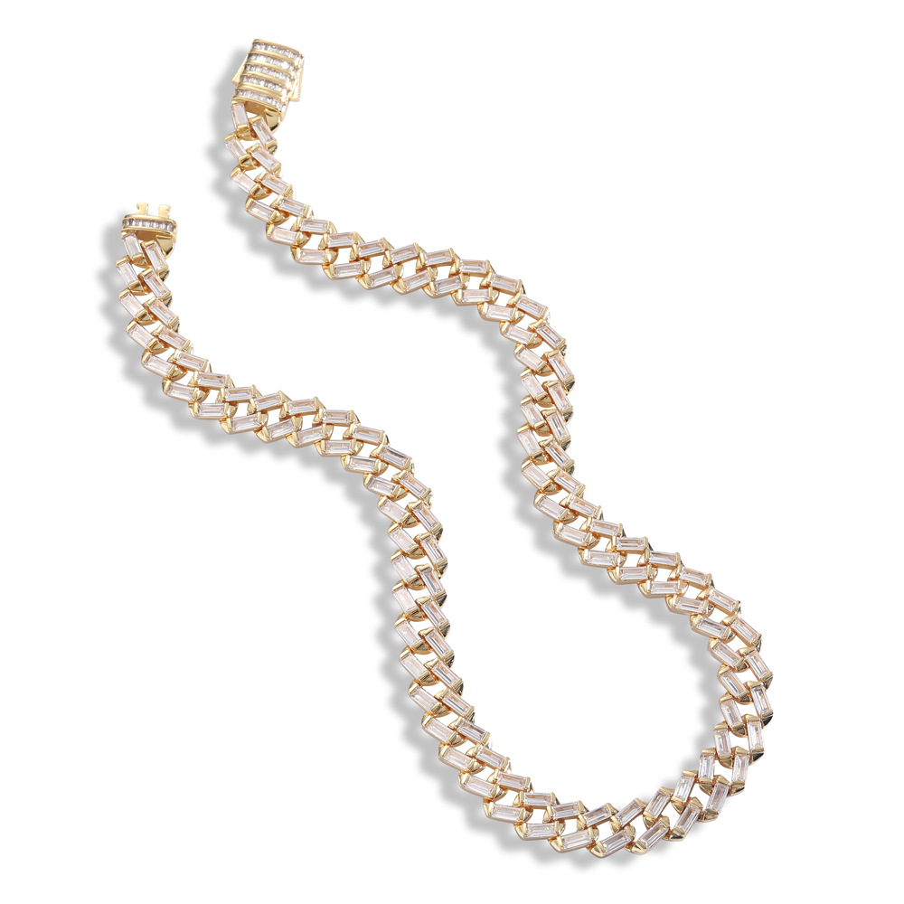 Hip Hop Cuban Chain 12mm Ladder Square Chain Zircon Necklace