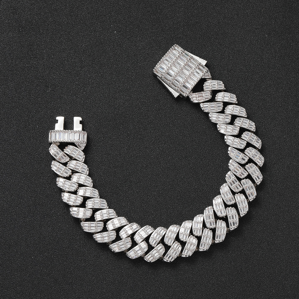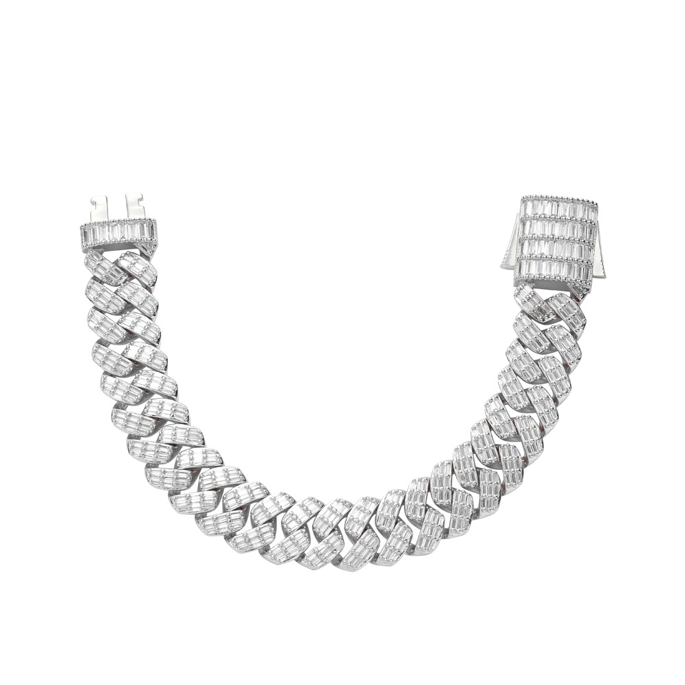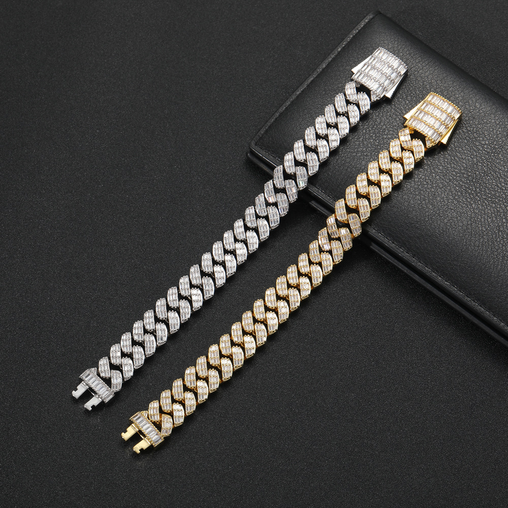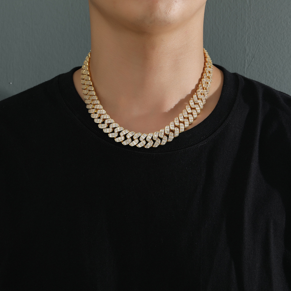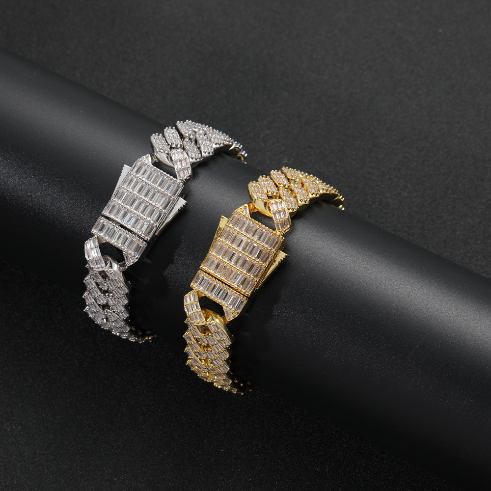 Hip Hop Cuban Chain 17mm Ladder Square Chain Spring Buckle Zircon Necklace