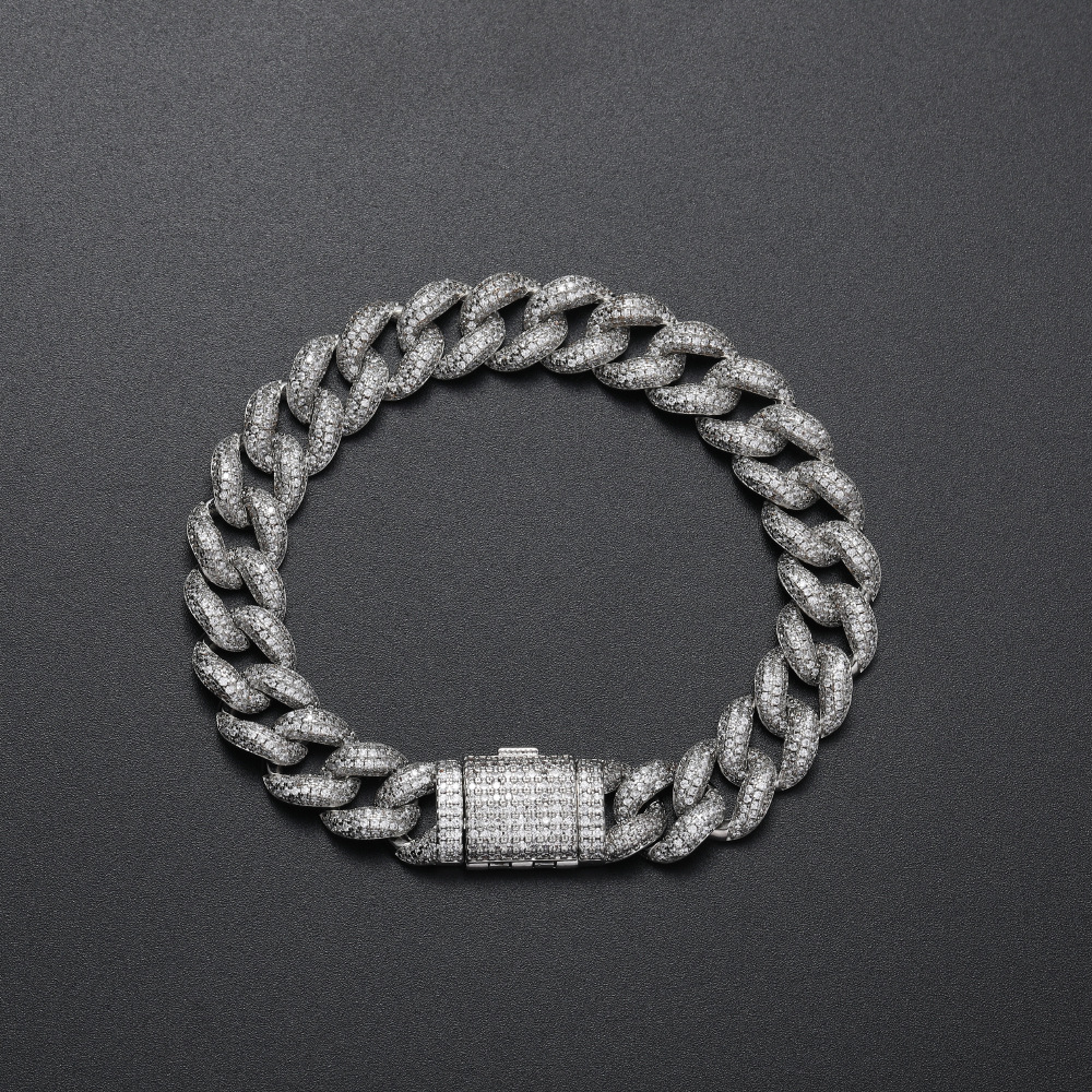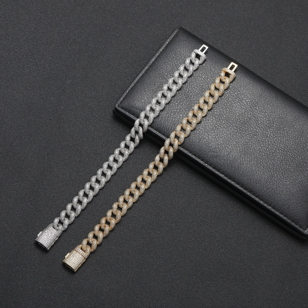 Hip Hop Cuban Chain Copper Inlaid Zircon 12mm Box Chain Tennis Chain Bracelet