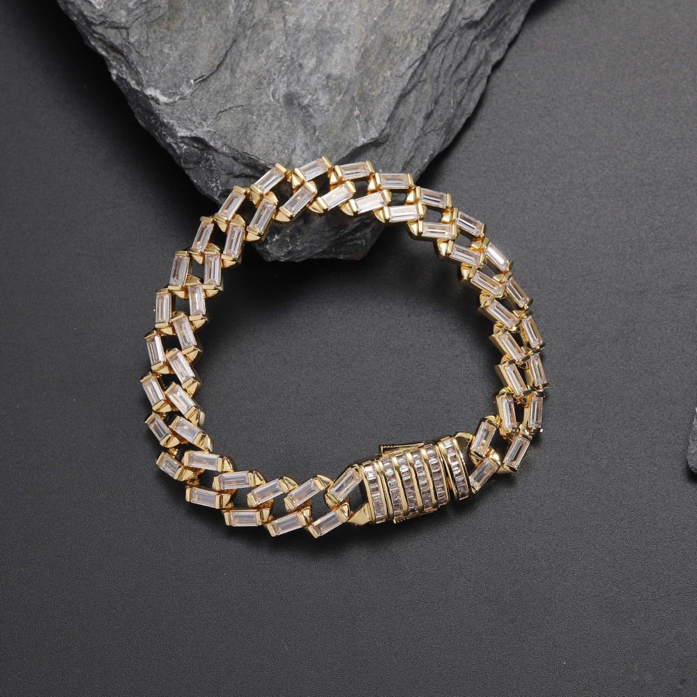 Hip Hop Cuban Chain Copper Inlaid Zircon 12mm Diamond Tennis Chain Bracelet