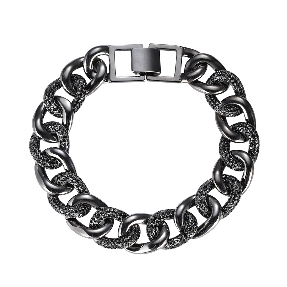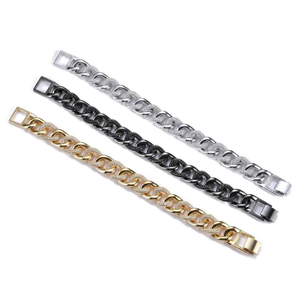 Hip Hop Cuban Chain Copper Inlaid Zircon 13mm Diamond Single Row Tennis Chain Bracelet