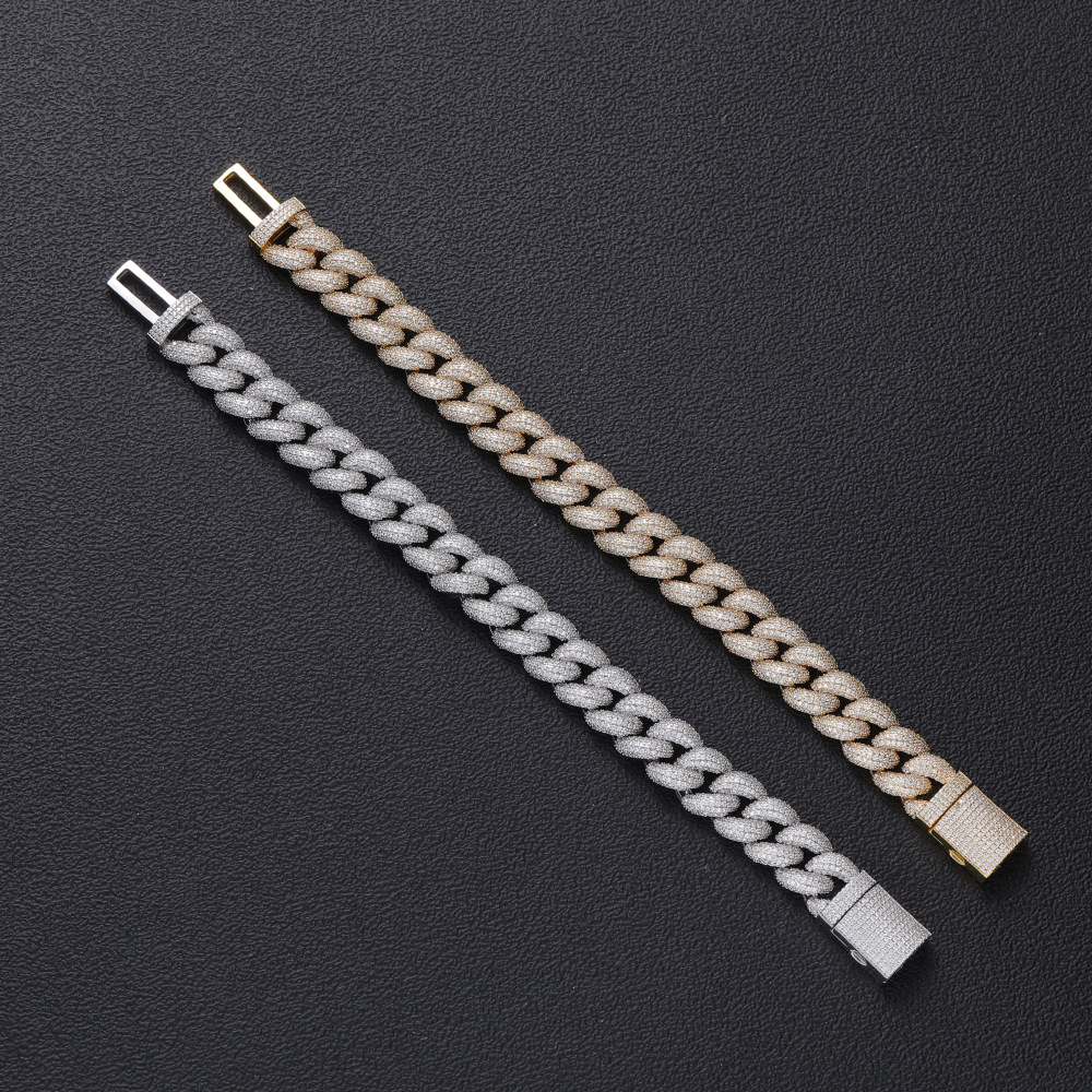 Hip Hop Cuban Chain Copper Inlaid Zircon 15mm 5 Row Zircon Box Chain Tennis Chain Bracelet