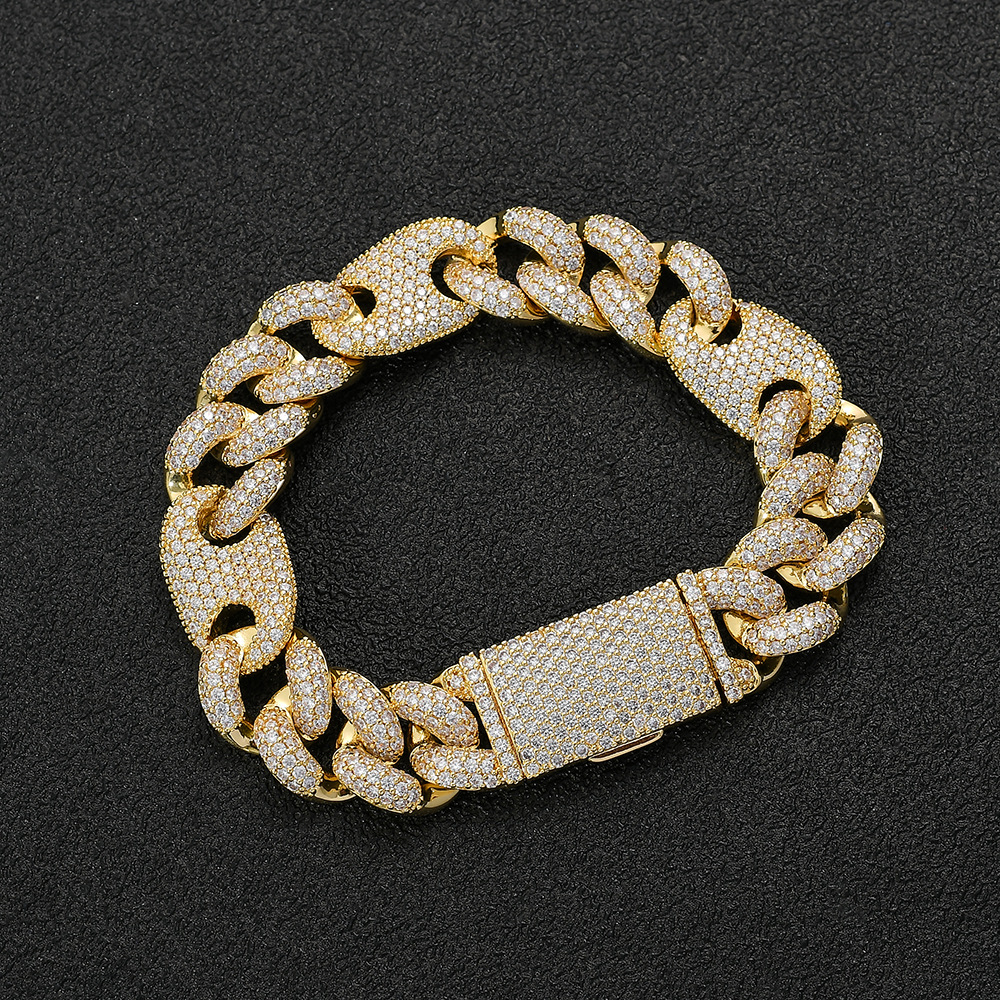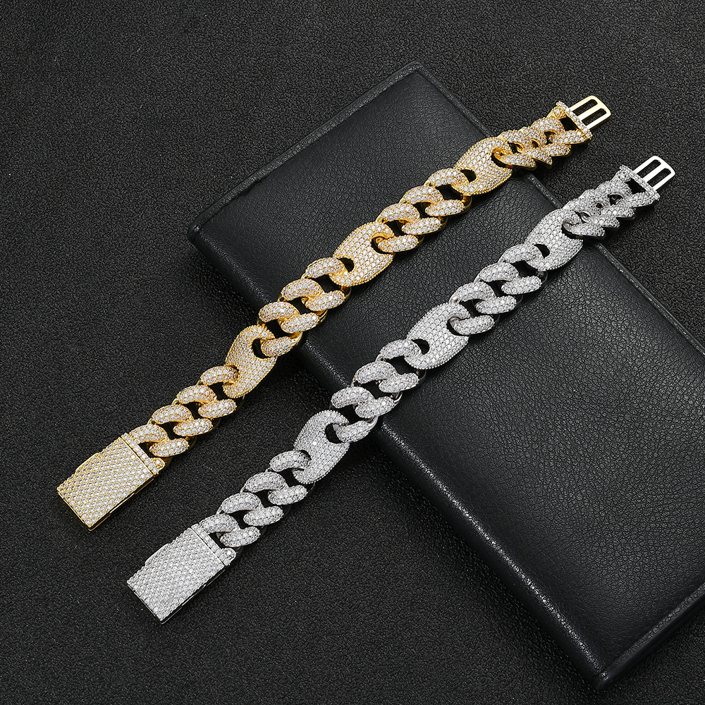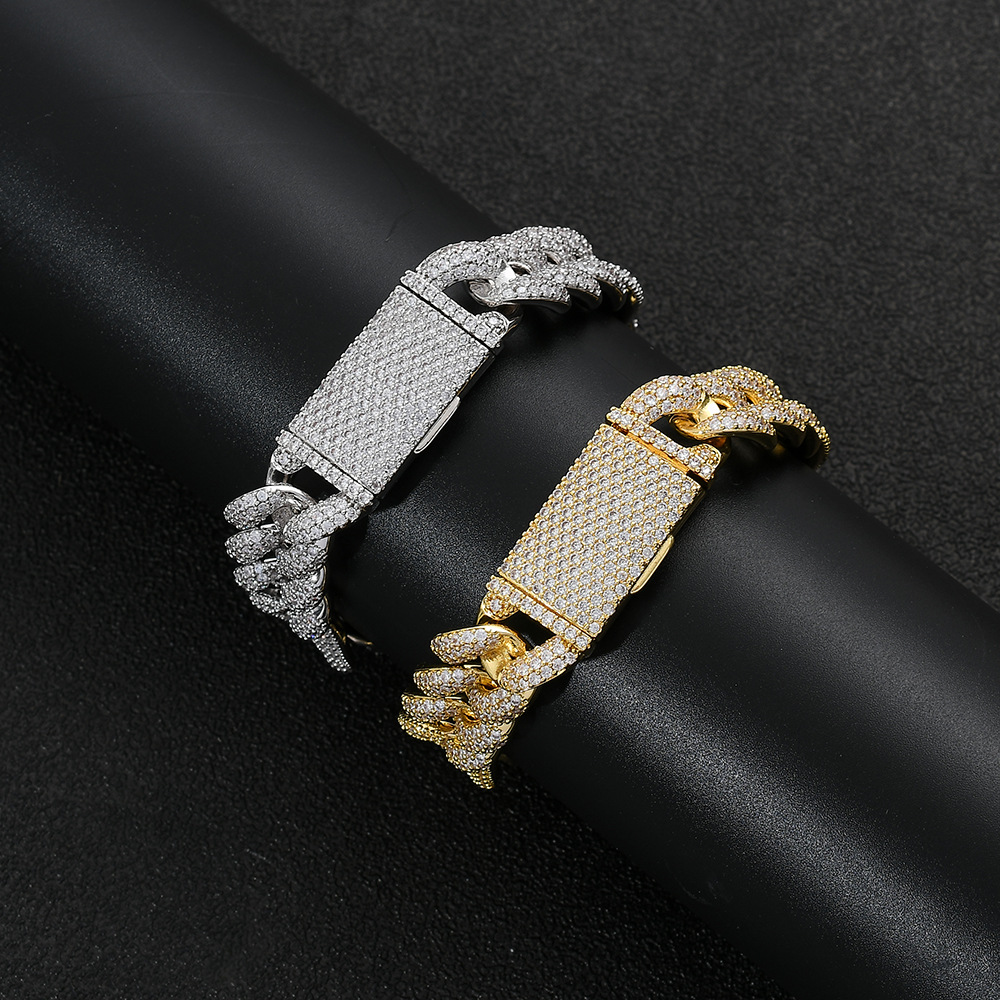 Hip Hop Cuban Chain Copper Inlaid Zircon 16mm Pig Nose Tennis Chain Bracelet