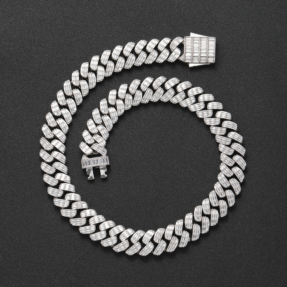 LXXL4016 Hip Hop Copper Inlaid Zircon 3mm Single Row 3 Prong Tennis Chain Necklace
