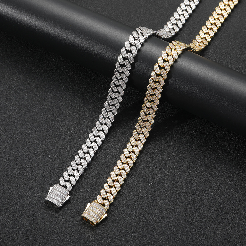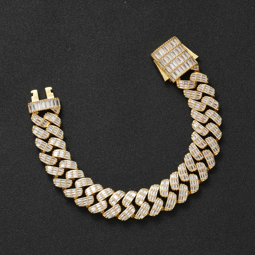 Hip Hop Cuban Chain Copper Inlaid Zircon 17mm Spring Buckle Tennis Chain Bracelet