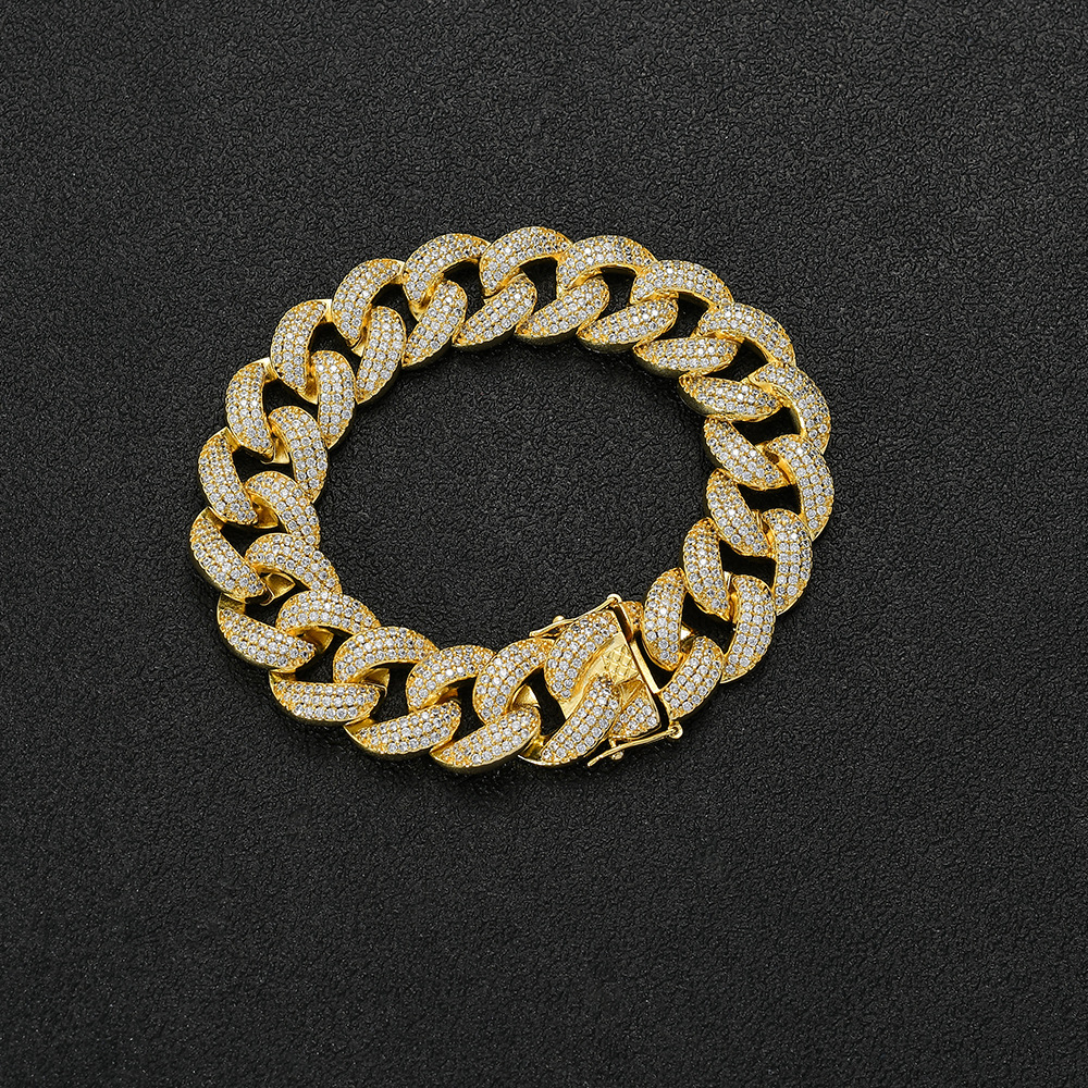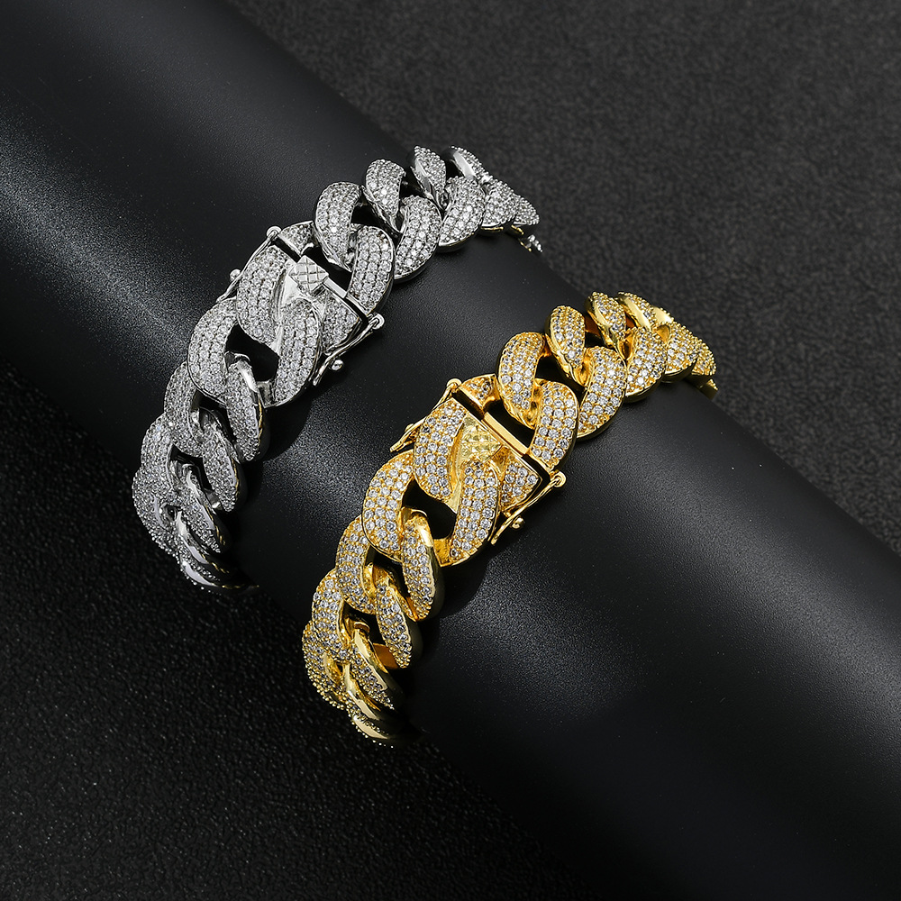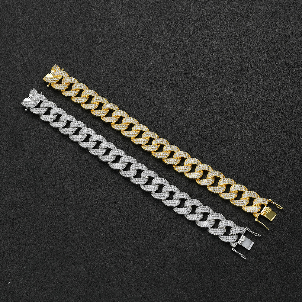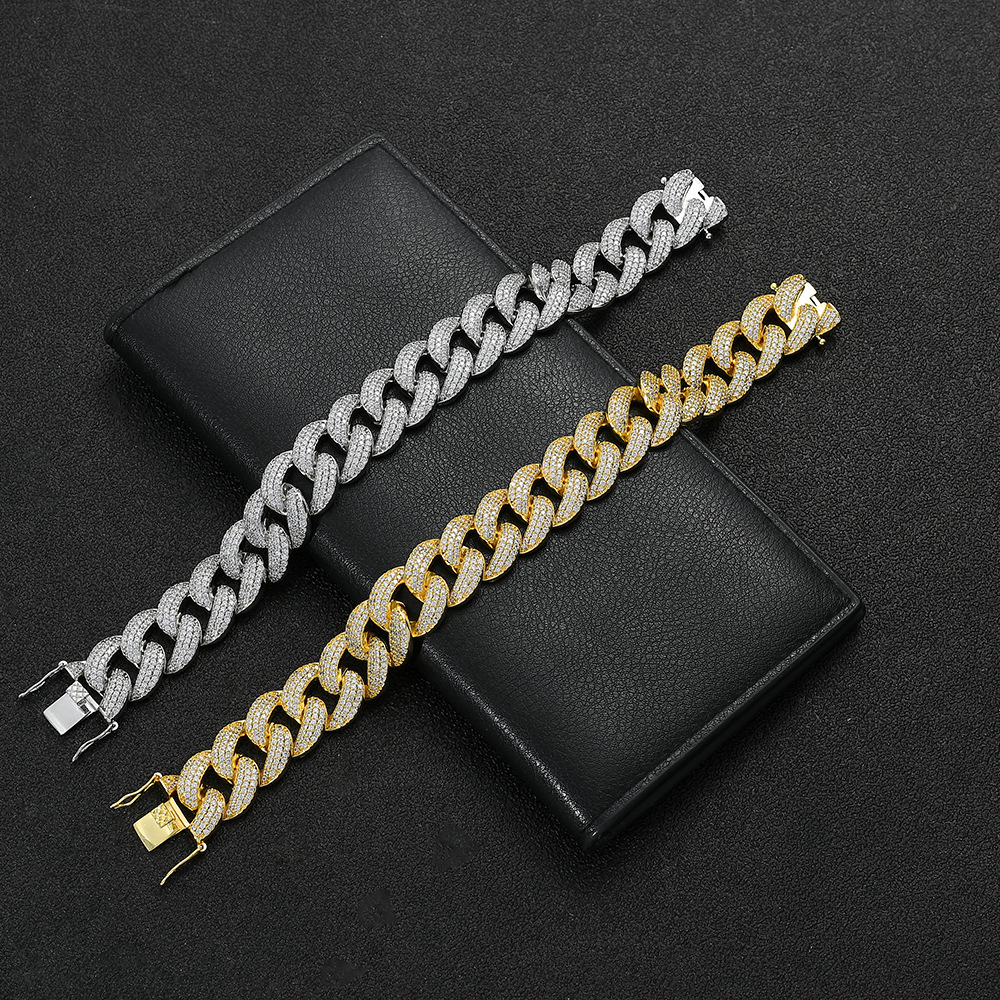 Hip Hop Cuban Chain Copper Inlaid Zircon 19mm 3 Row Zircon Box Chain Tennis Chain Bracelet