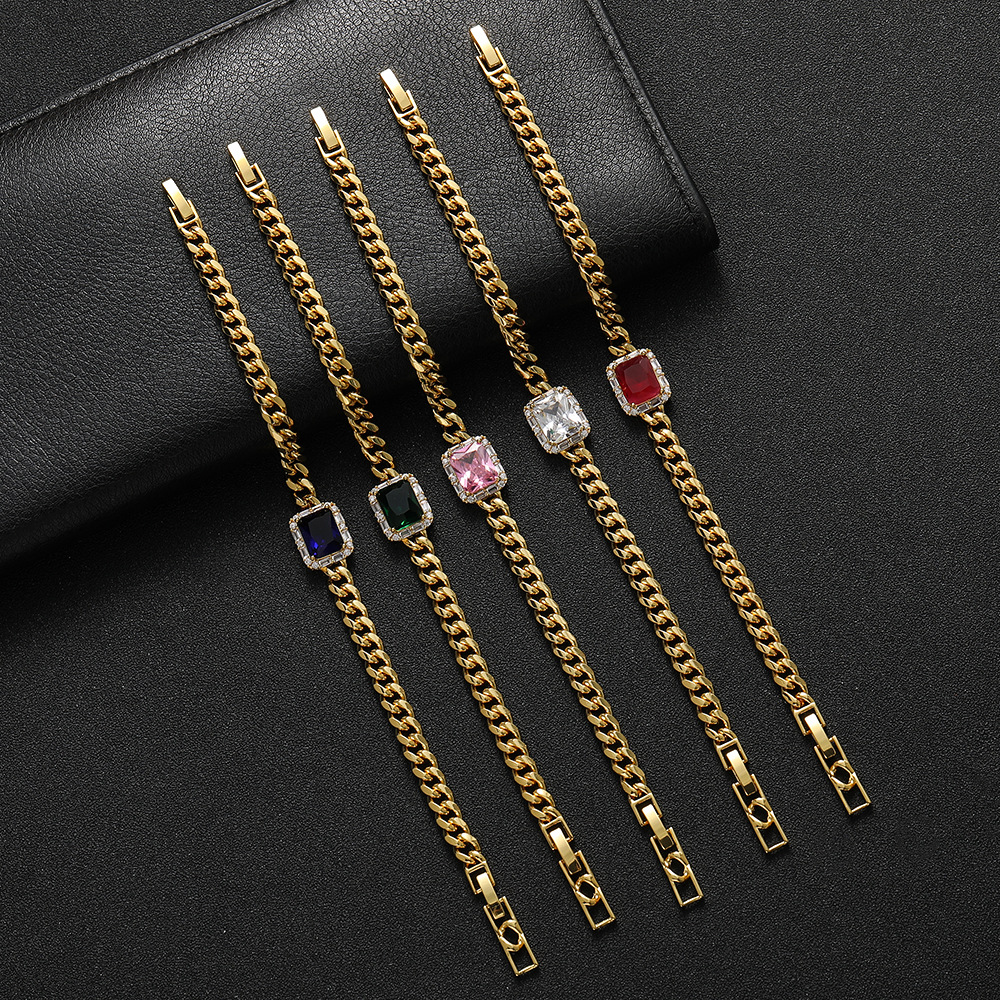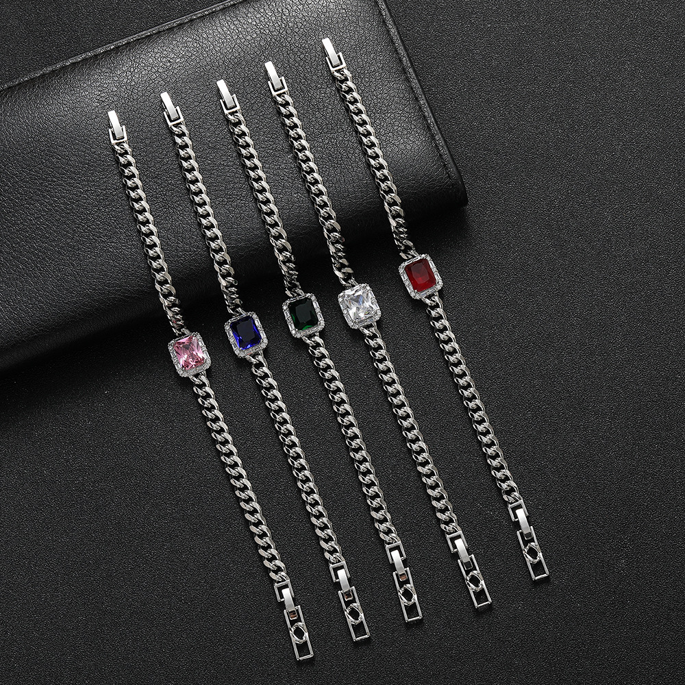 Hip Hop Cuban Chain Copper Inlaid Zircon Color Folding Clasp Bracelet