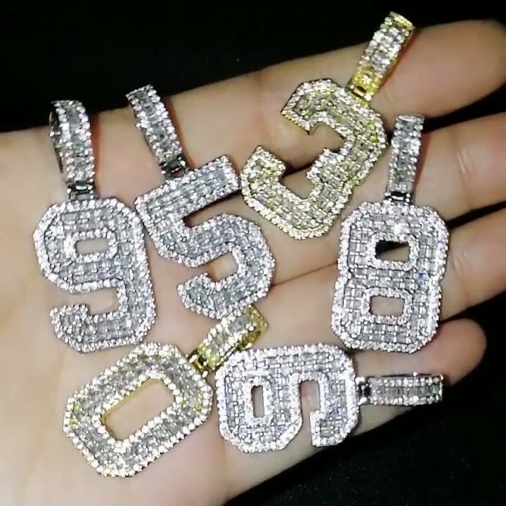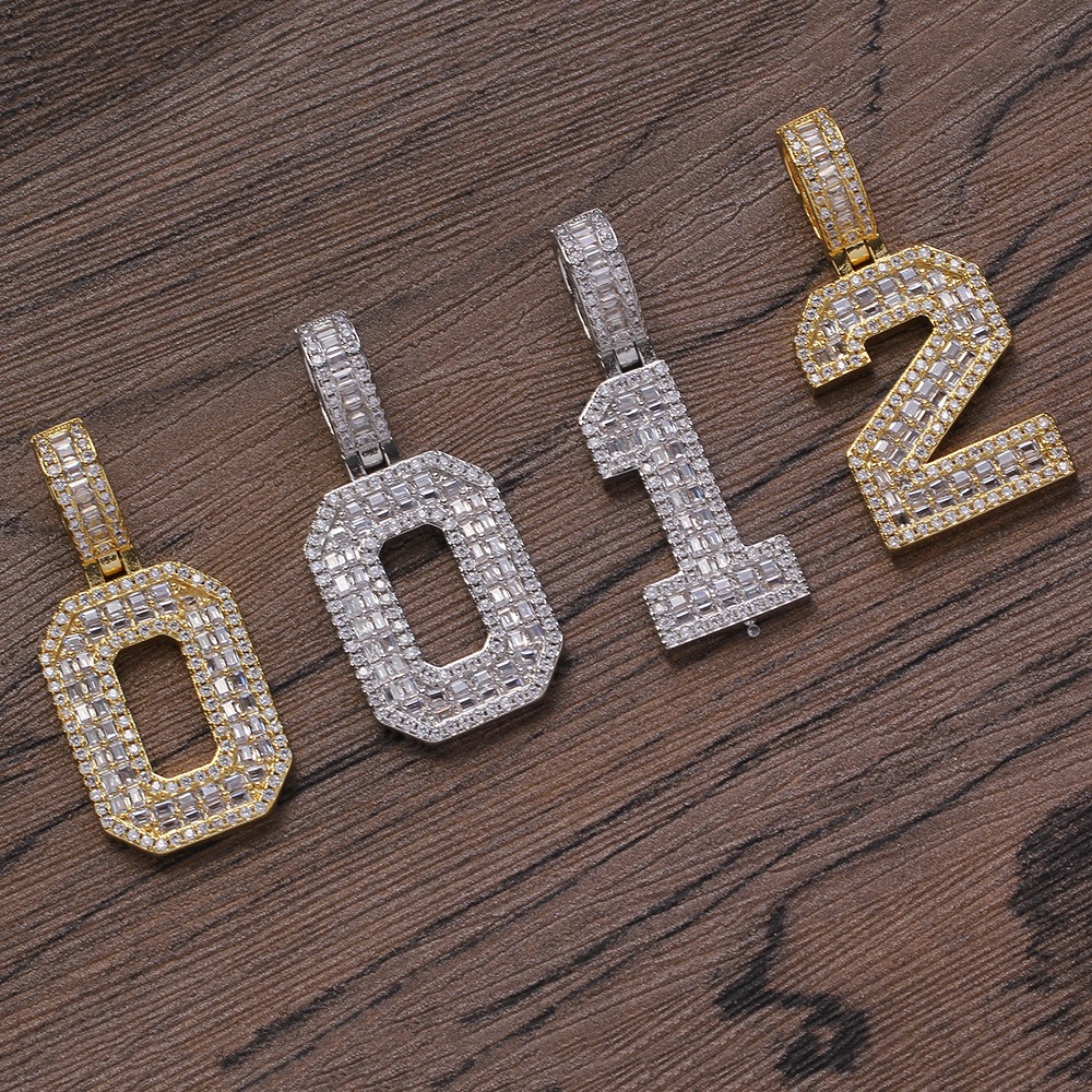 Hip hop pendant copper inlaid with zirconium 0-9 number shape
