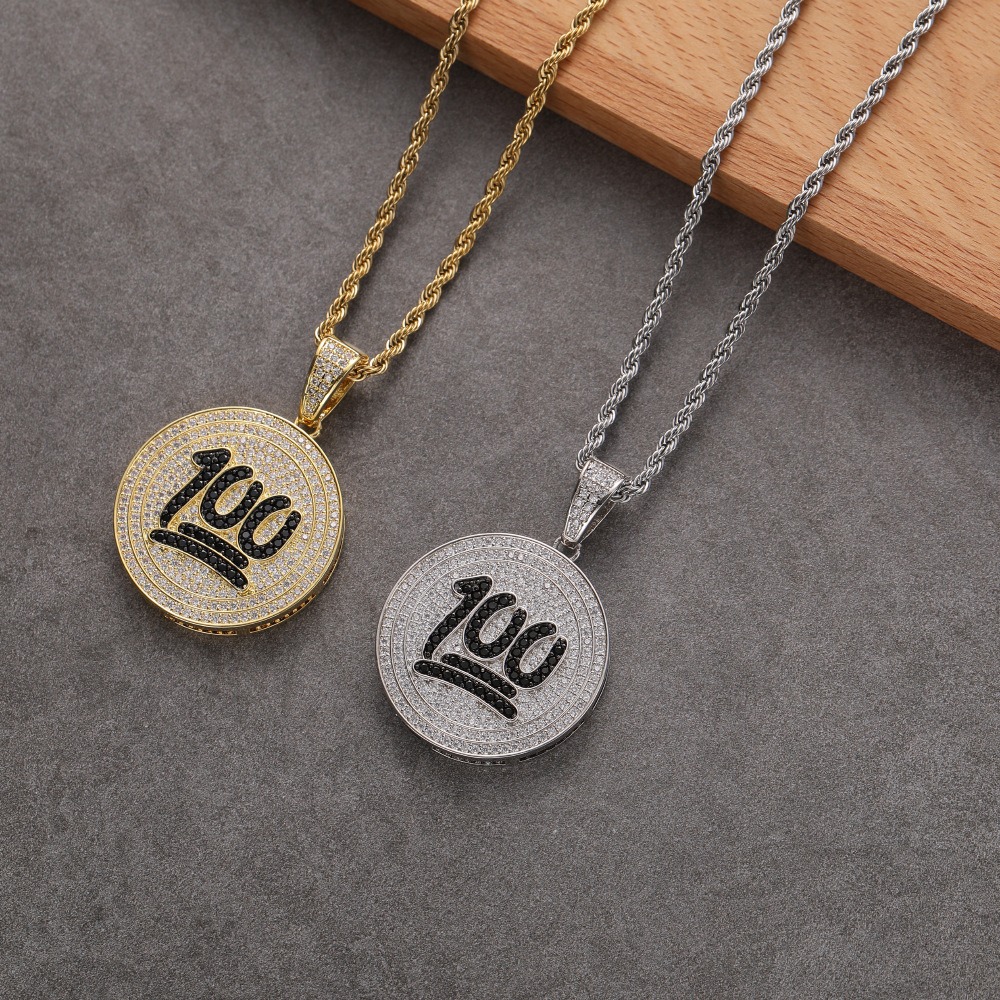 Hip hop pendant copper inlaid with zircon 100 minutes round shape