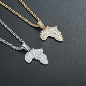 Hip hop pendant copper inlaid with zircon Africa map shape
