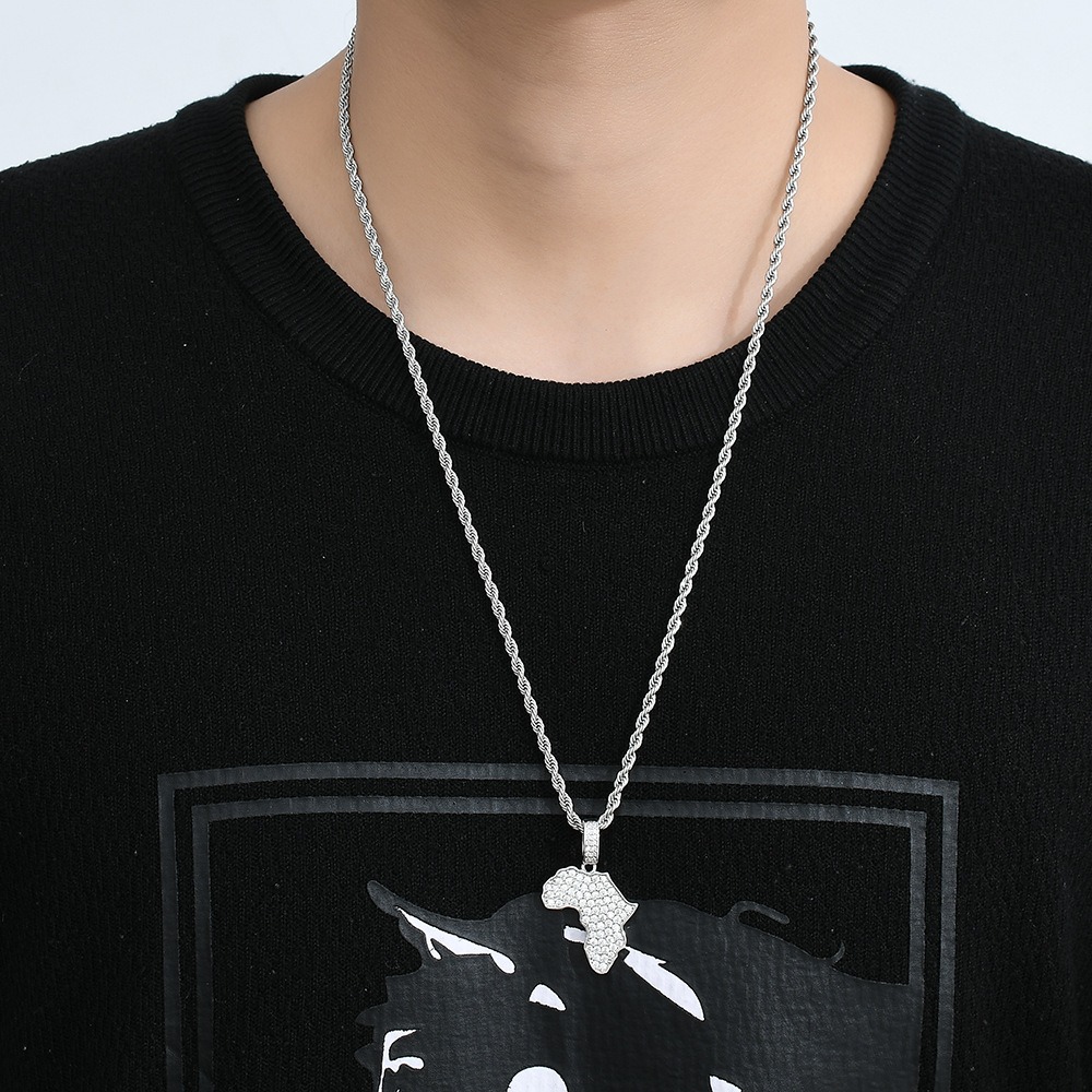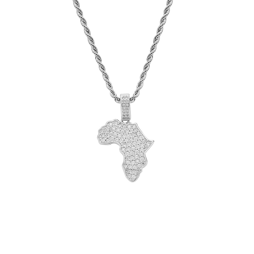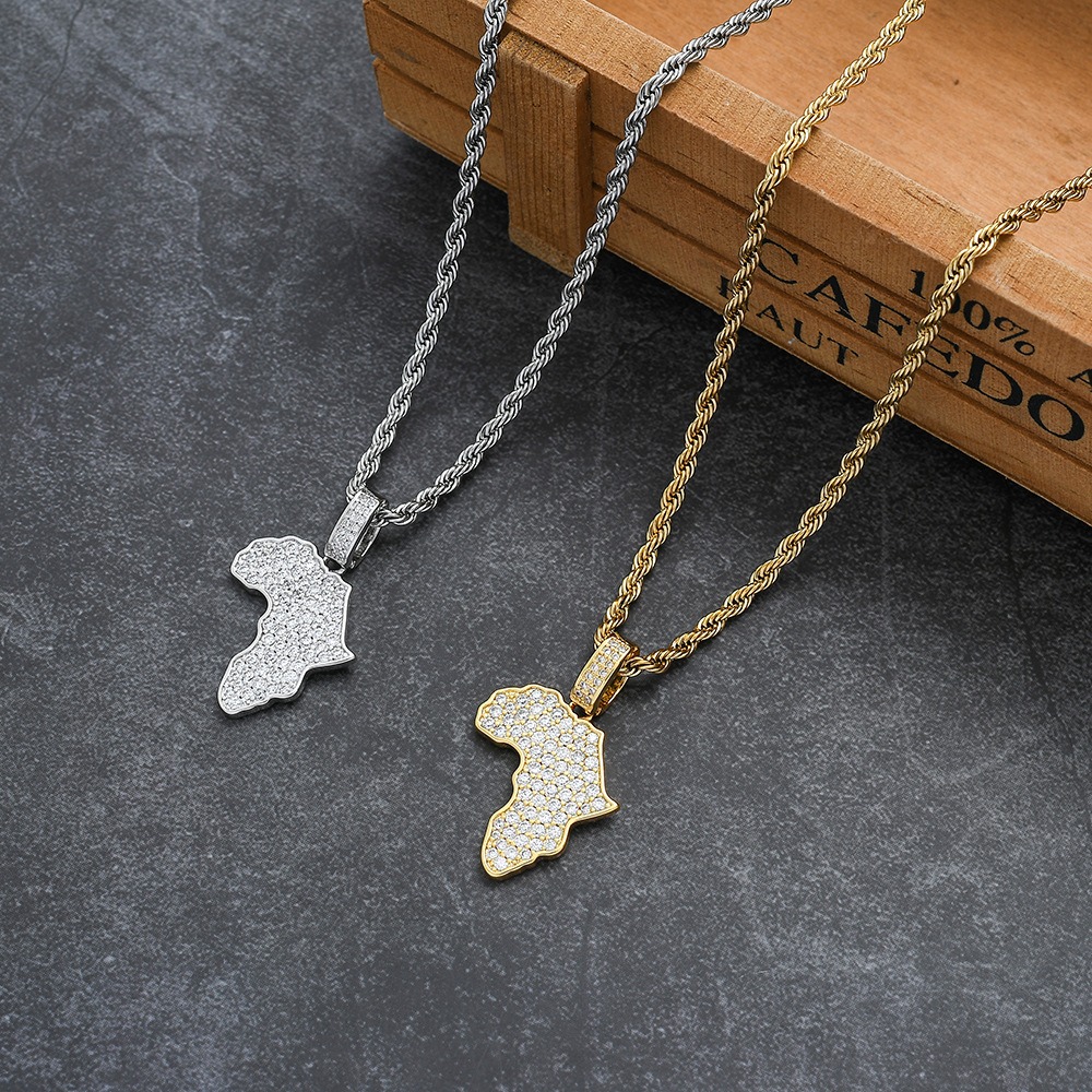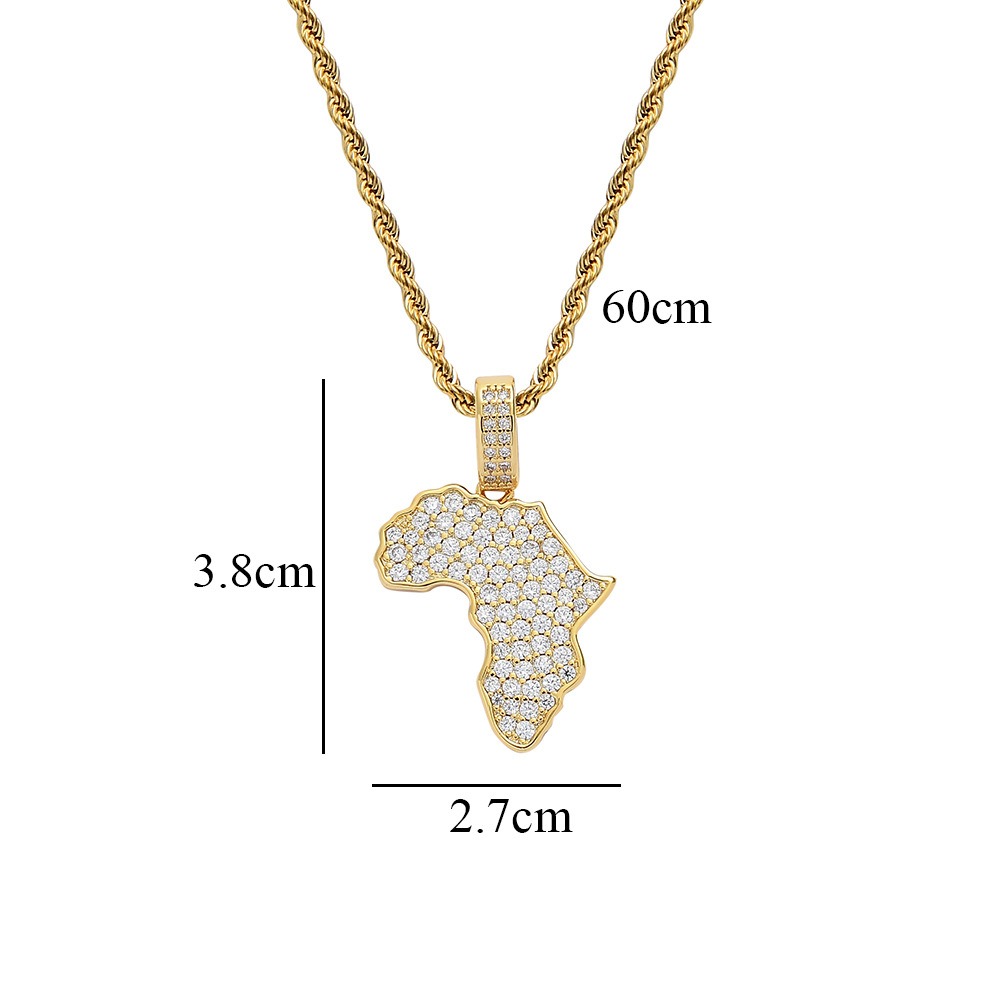 Hip hop pendant copper inlaid with zircon Africa map shape