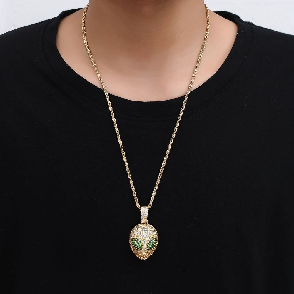 Hip hop pendant copper inlaid with zircon alien shape