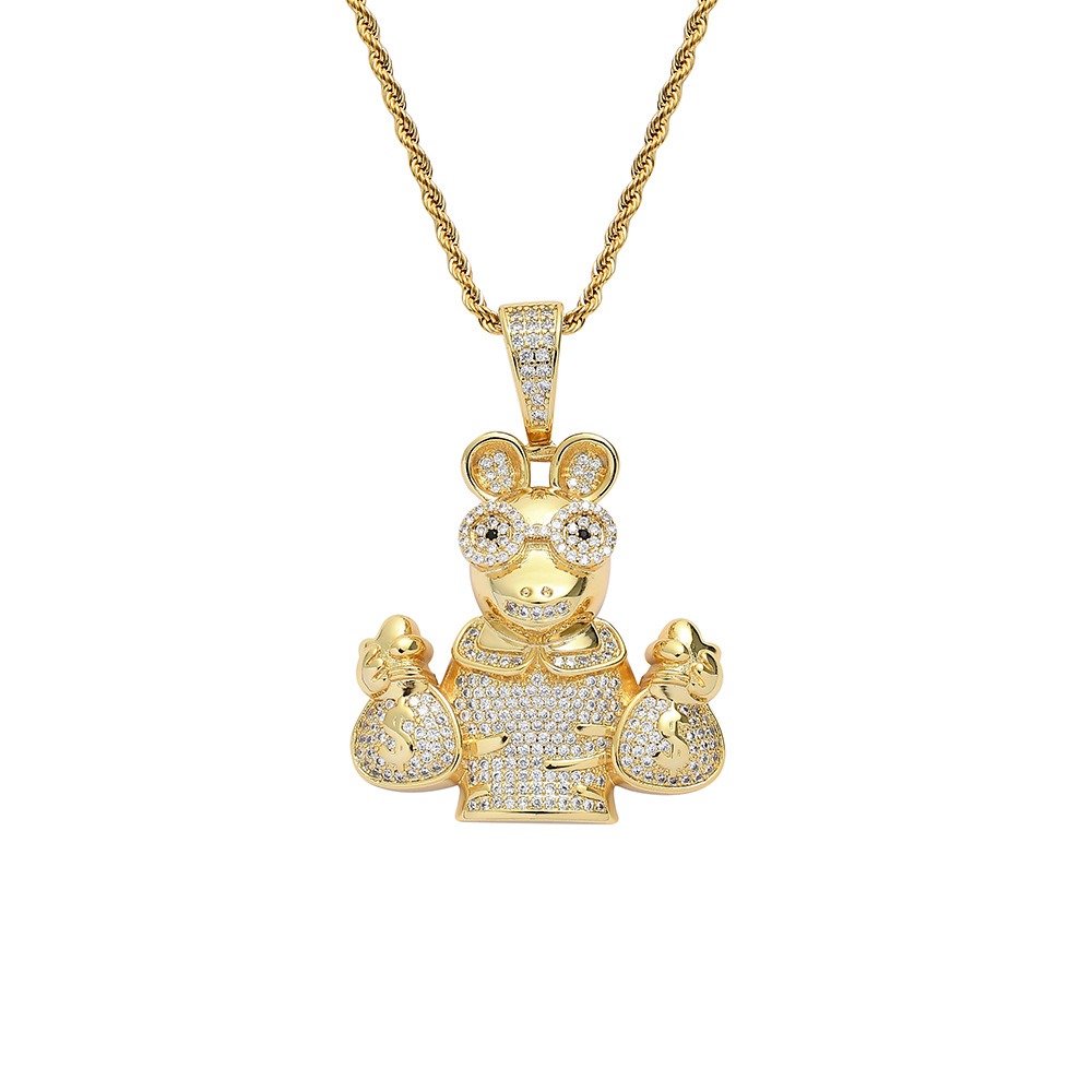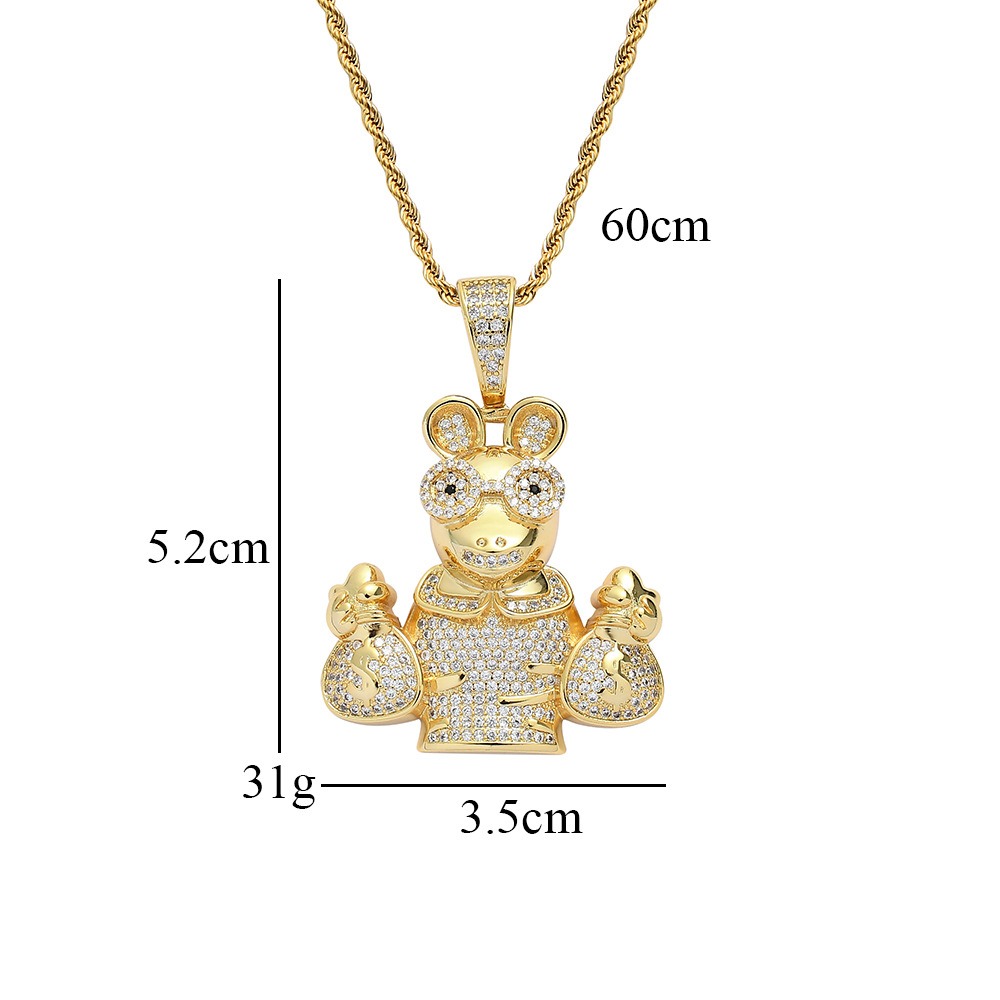 Hip hop pendant copper inlaid with zircon animal hand holding beauty money bag shape