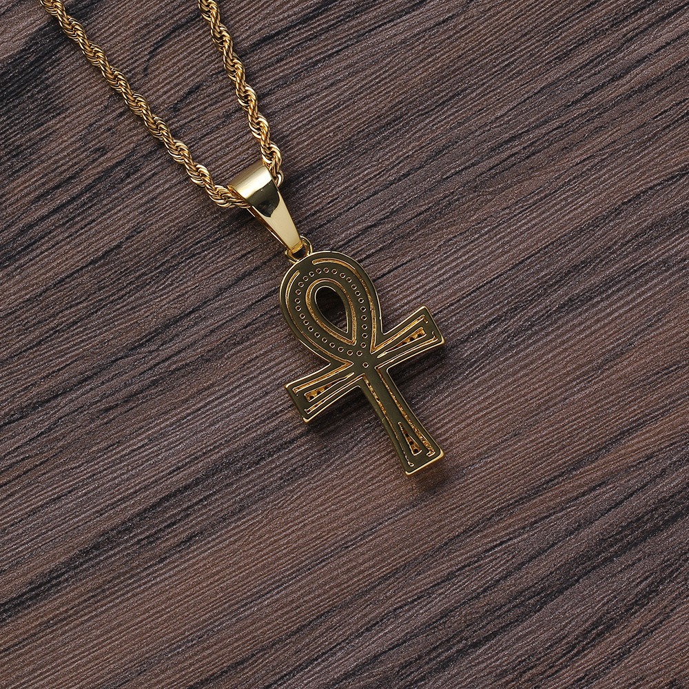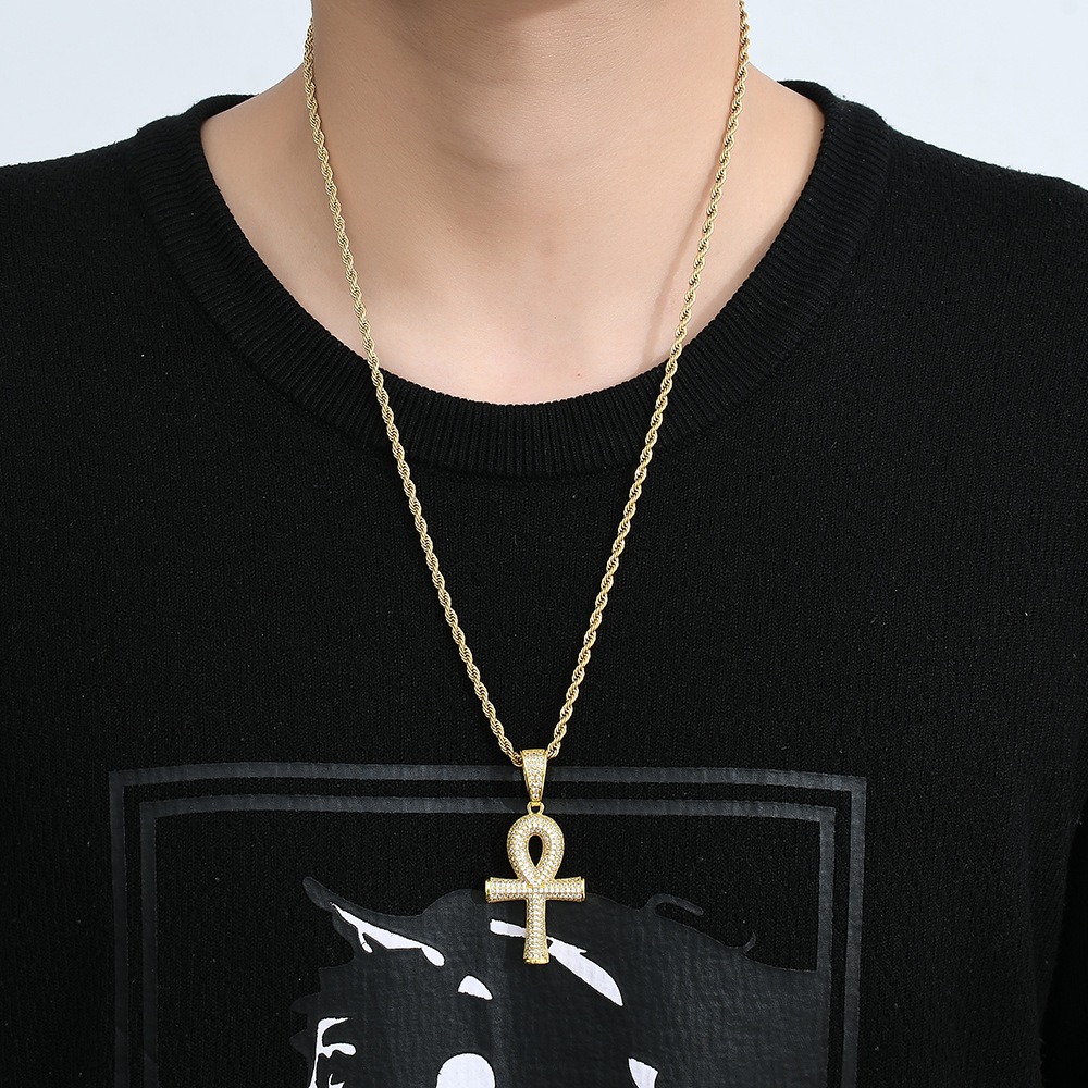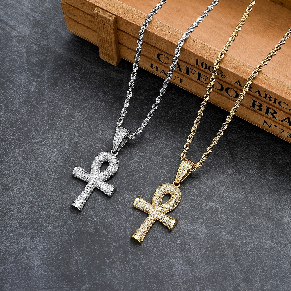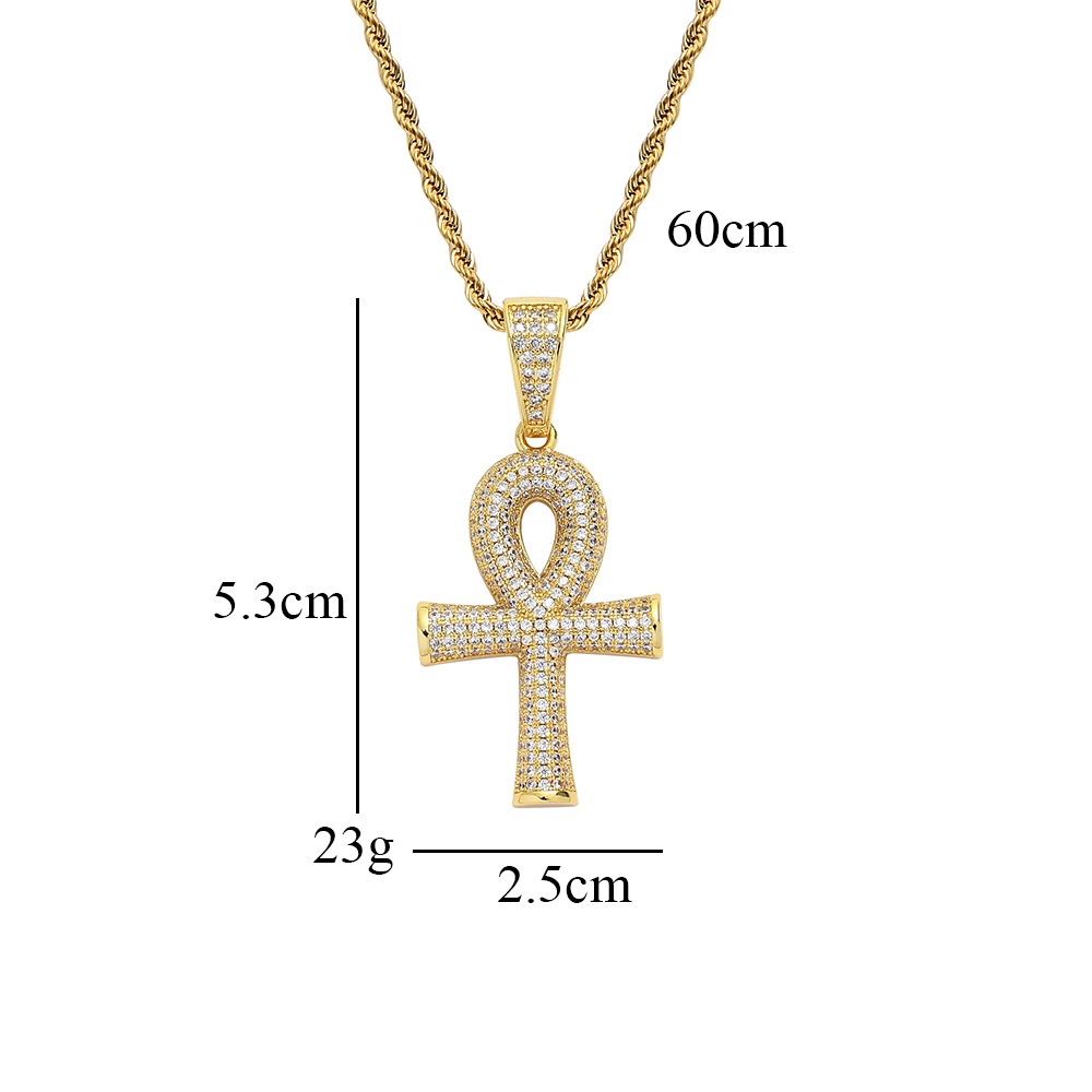 Hip Hop pendant copper inlaid with zircon Anka cross shape