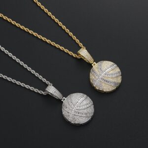 Hip hop pendant copper inlaid with zircon basketball shape