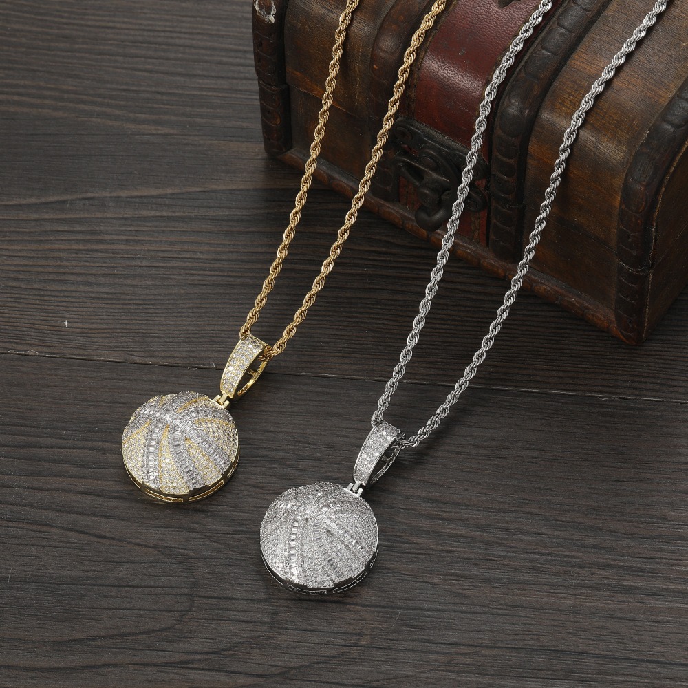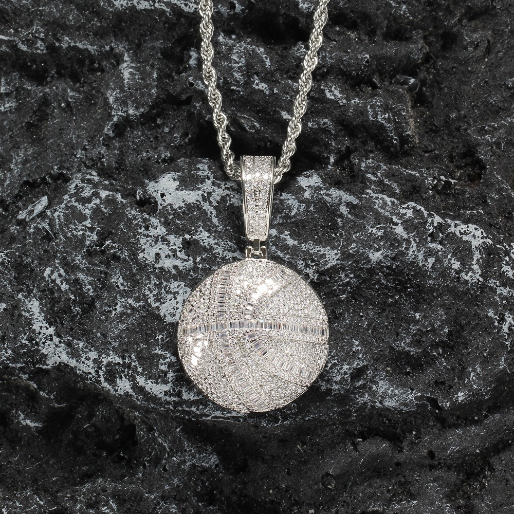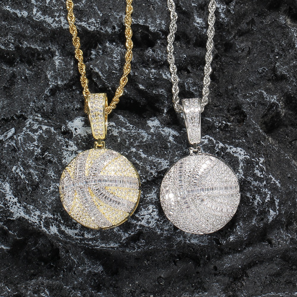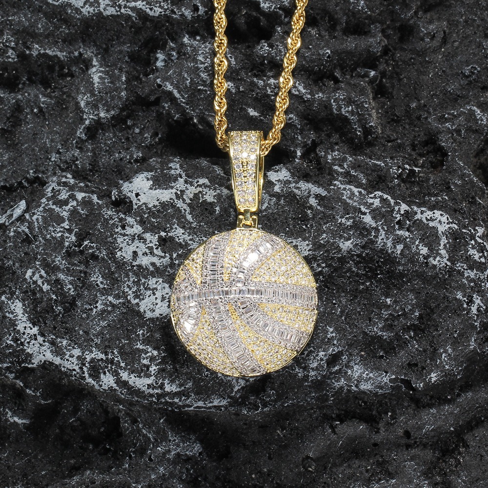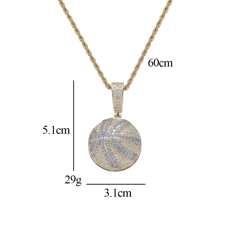 Hip hop pendant copper inlaid with zircon basketball shape