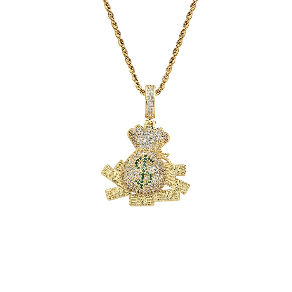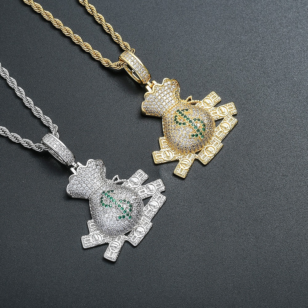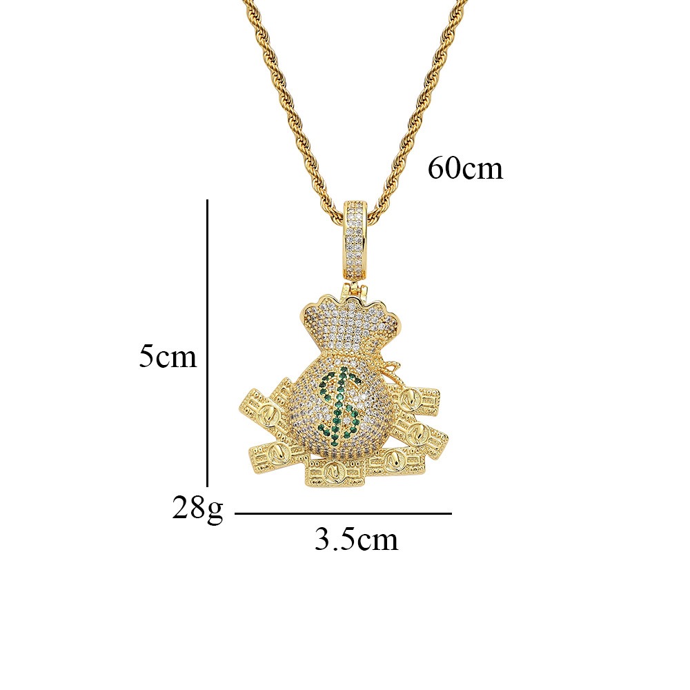 Hip hop pendant copper inlaid with zircon beauty money bag shape