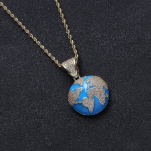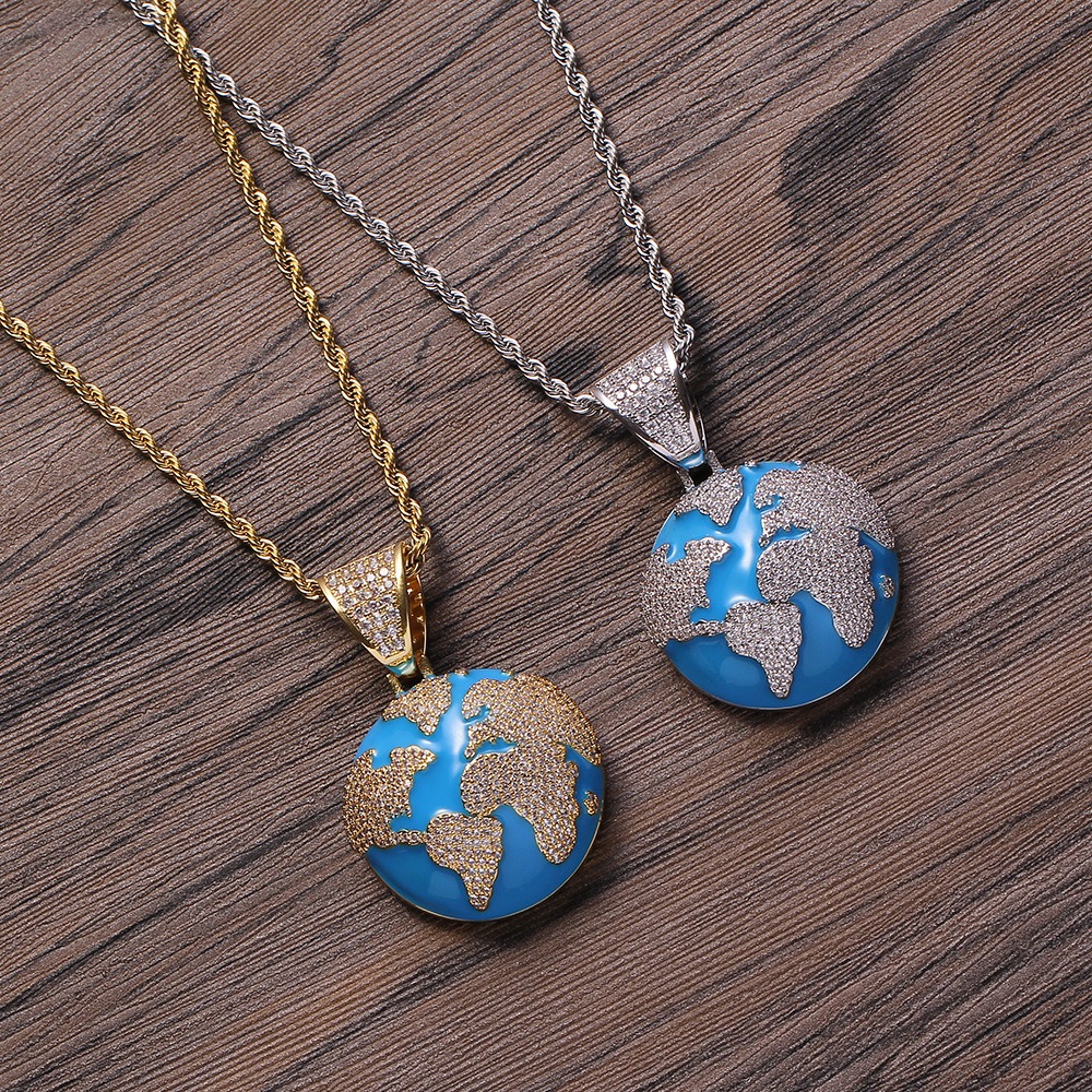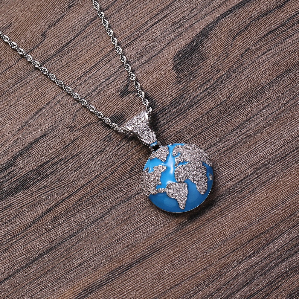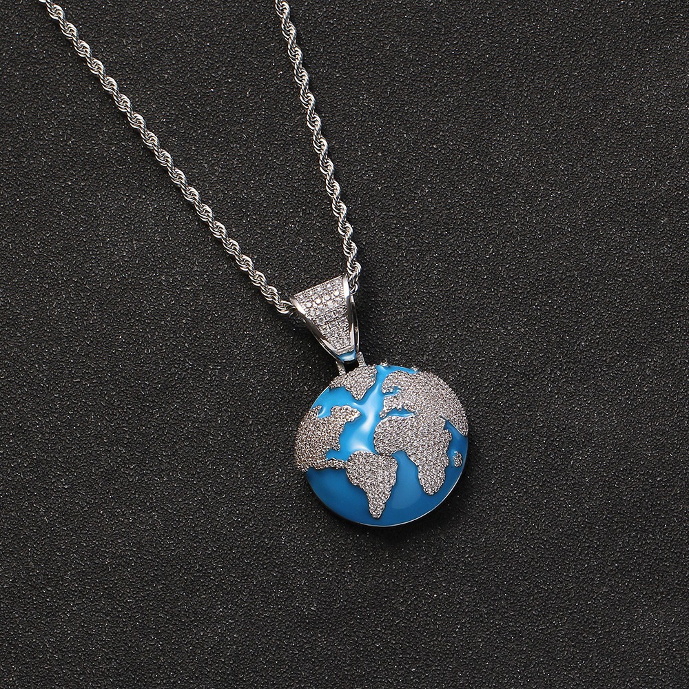 Hip hop pendant copper inlaid with zircon blue globe shape