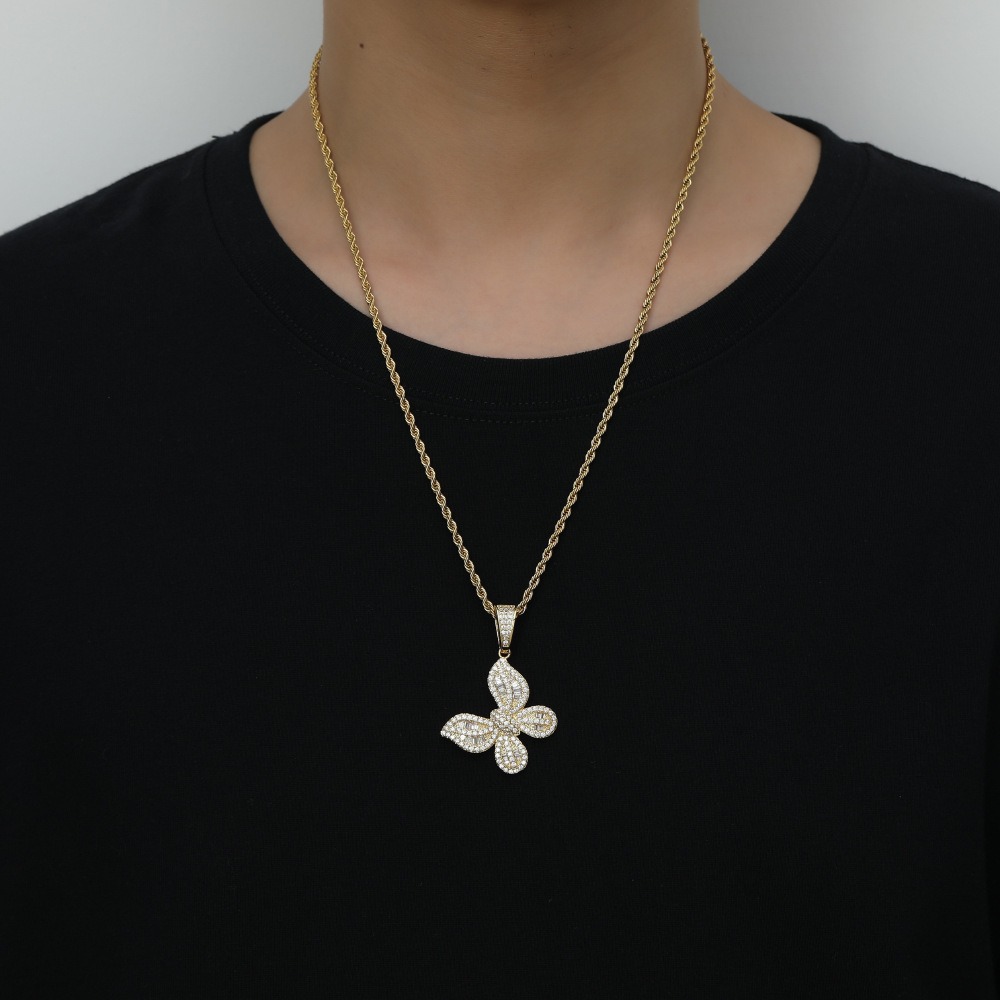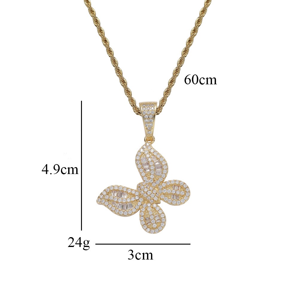 Hip hop pendant copper inlaid with zircon butterfly shape