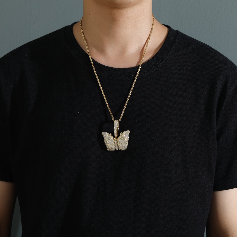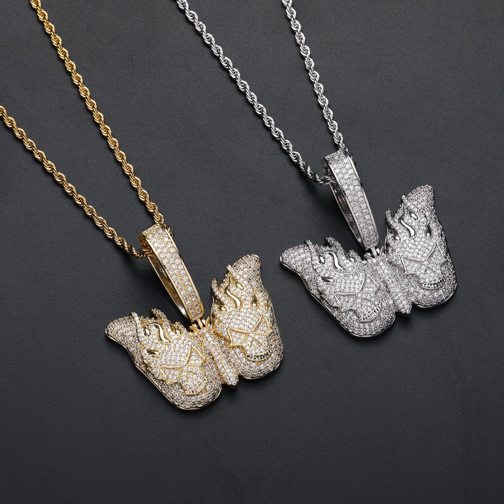 Hip hop pendant copper inlaid with zircon butterfly shape