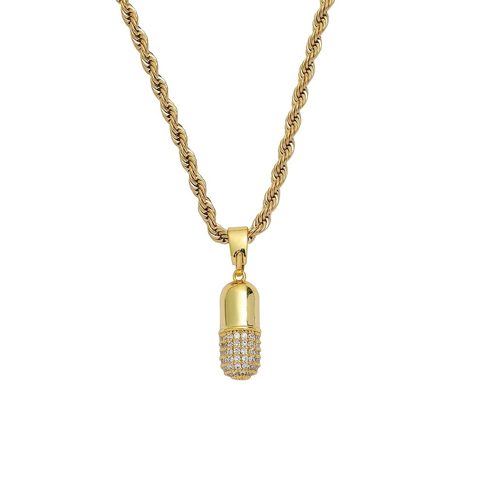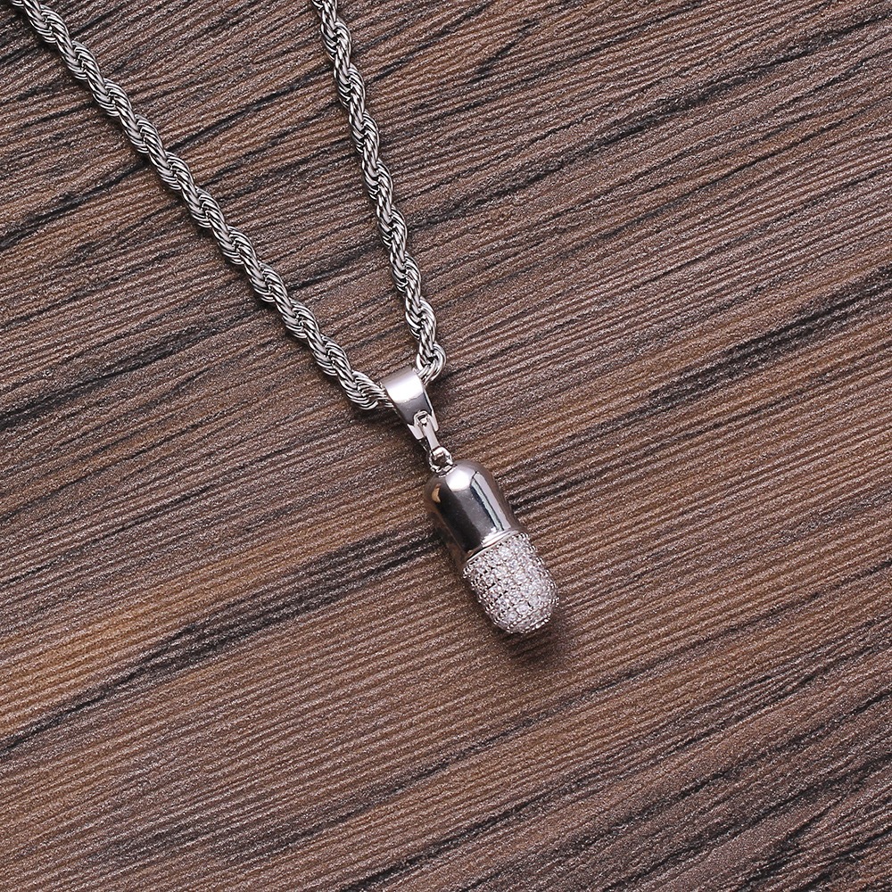 Hip hop pendant copper inlaid with zircon capsule shape