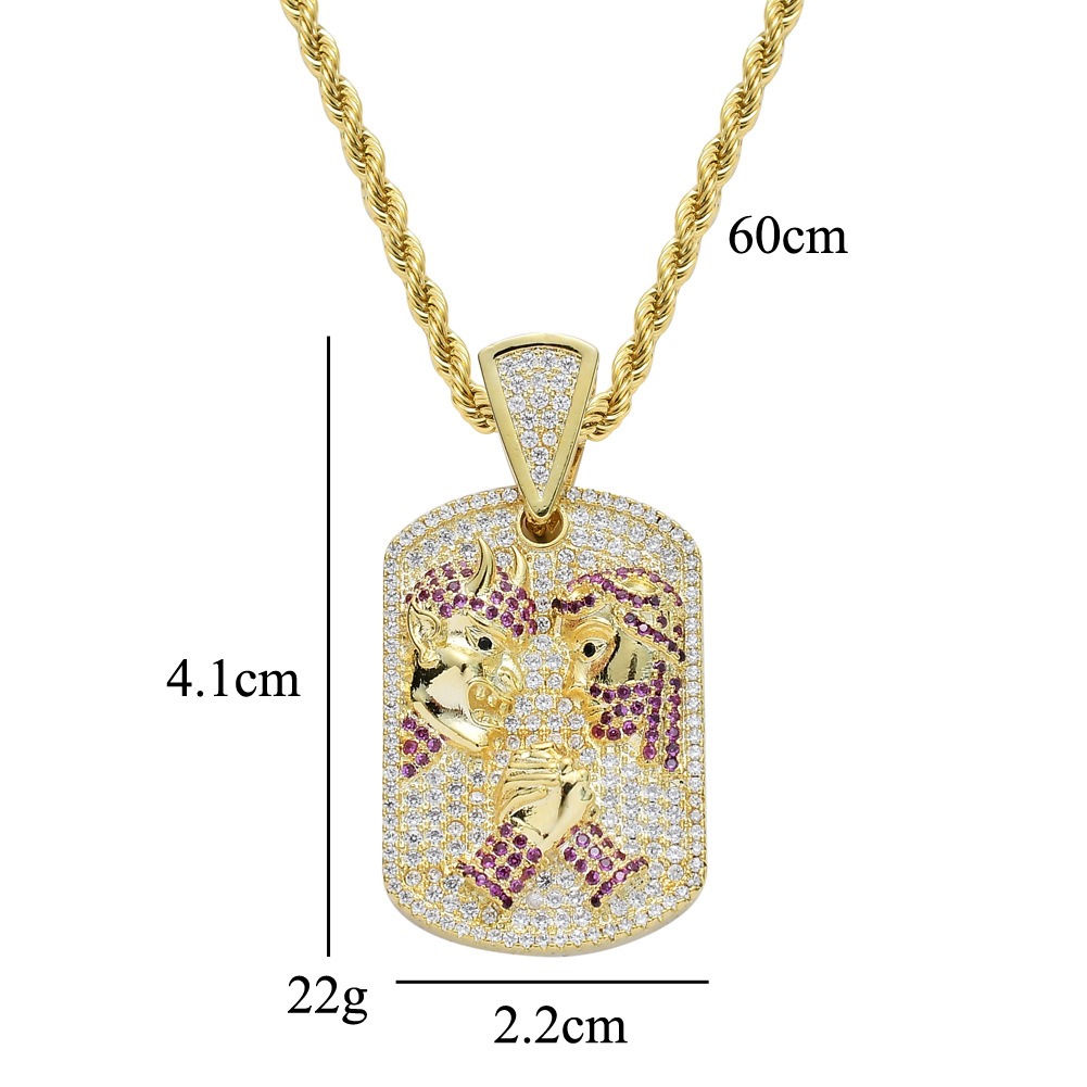 Hip hop pendant copper inlaid with zircon cartoon character military badge shape