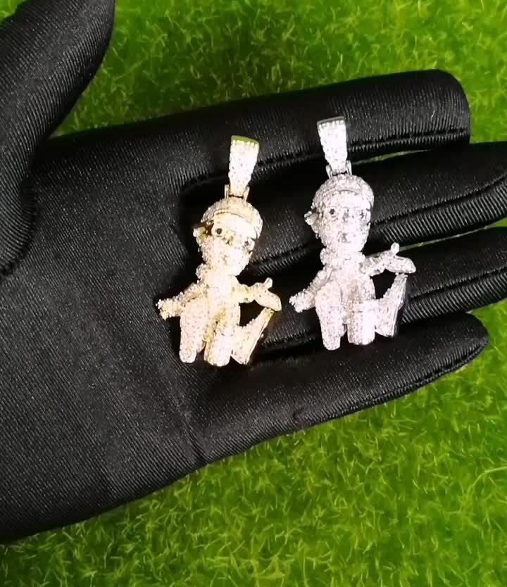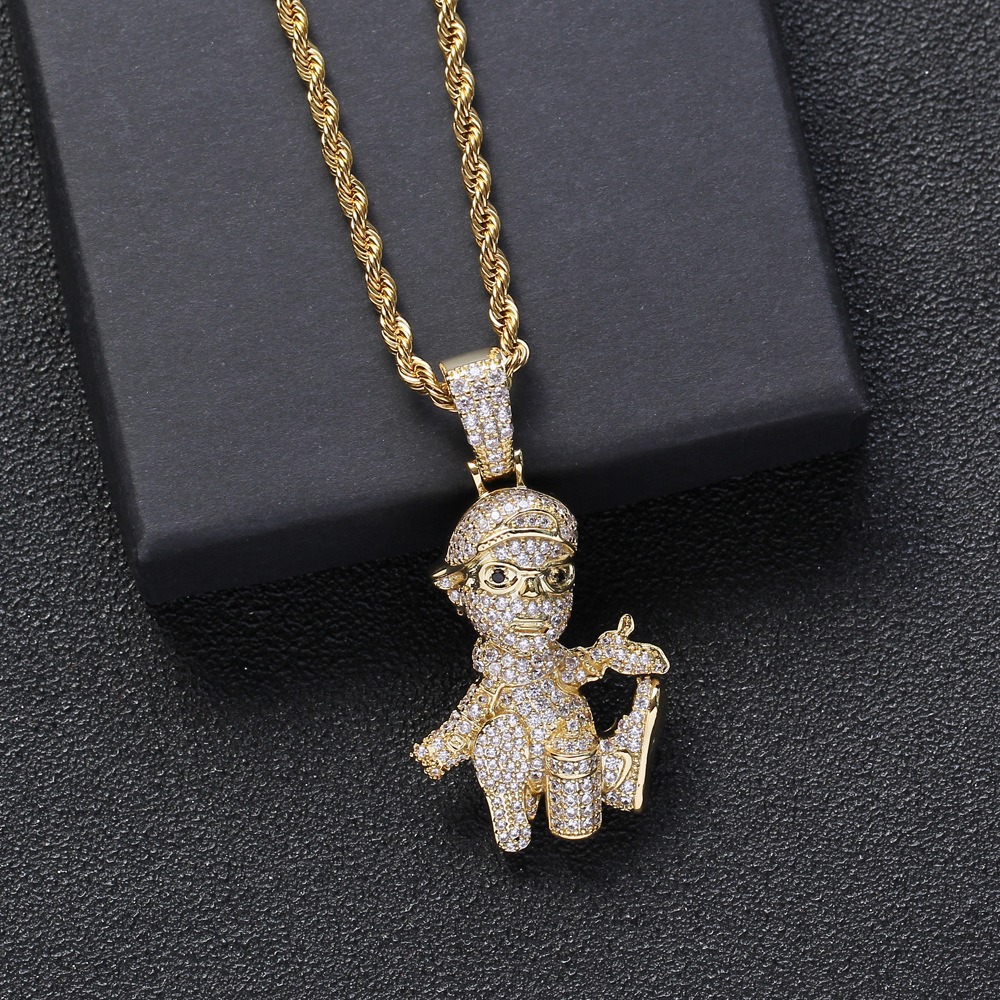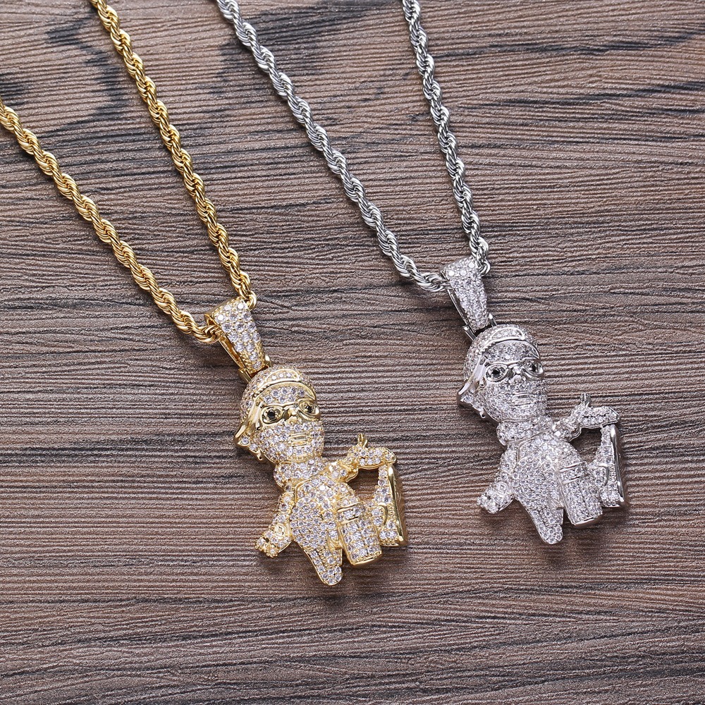 Hip hop pendant copper inlaid with zircon cartoon character shape