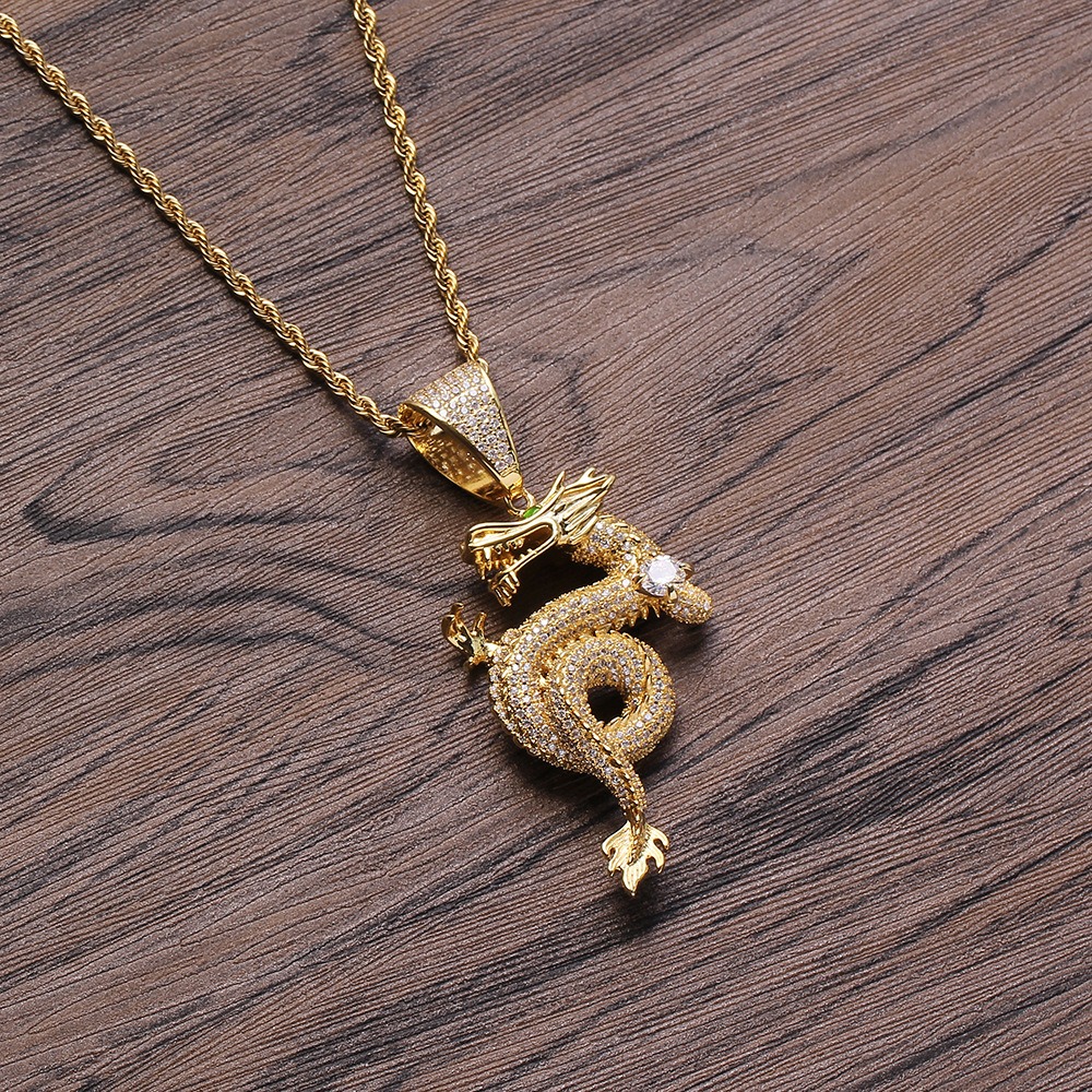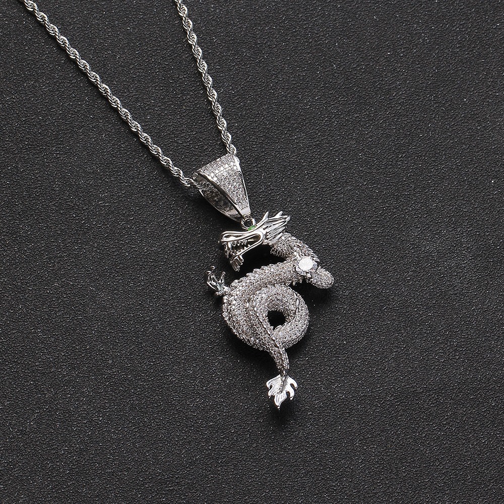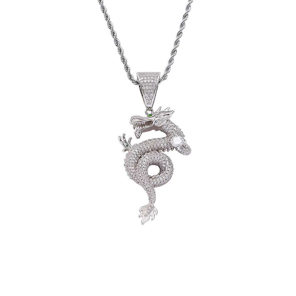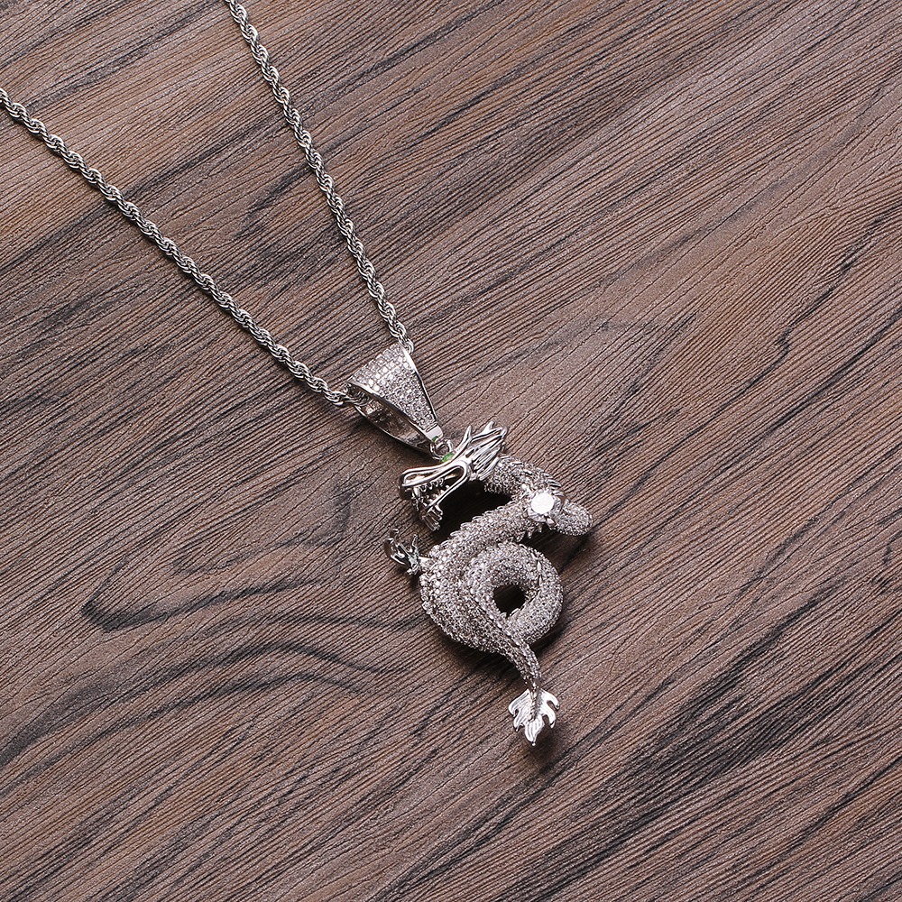 Hip hop pendant copper inlaid with zircon Chinese dragon shape