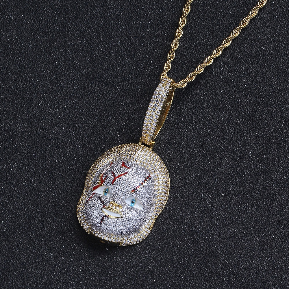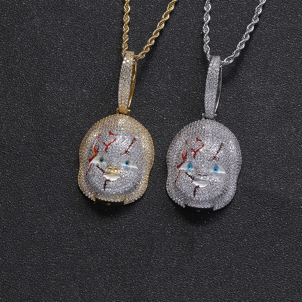 Hip hop pendant copper inlaid with zircon chucky head shape
