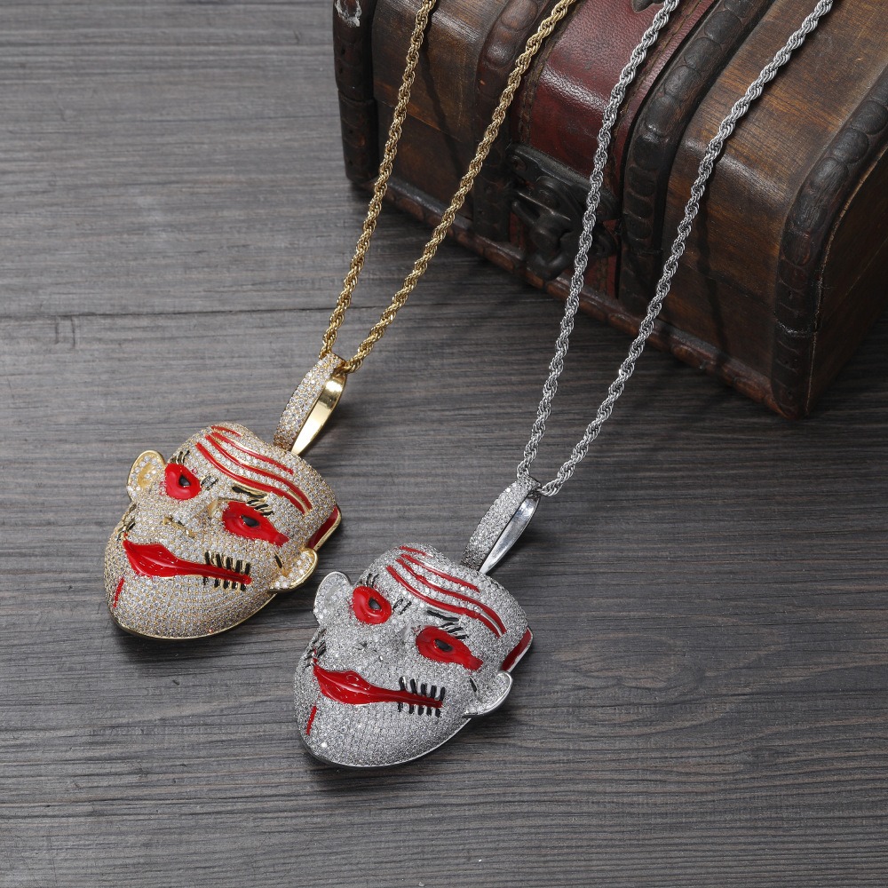 Hip hop pendant copper inlaid with zircon clown mask shape