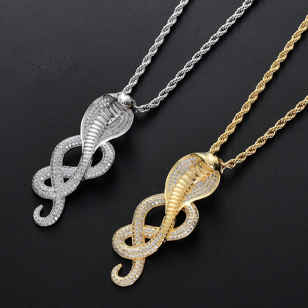 Hip Hop pendant copper inlaid with zircon cobra shape
