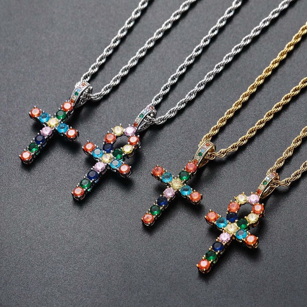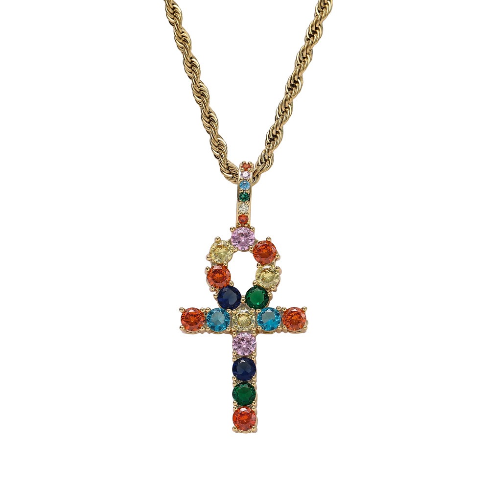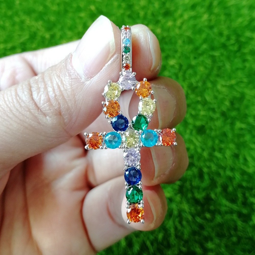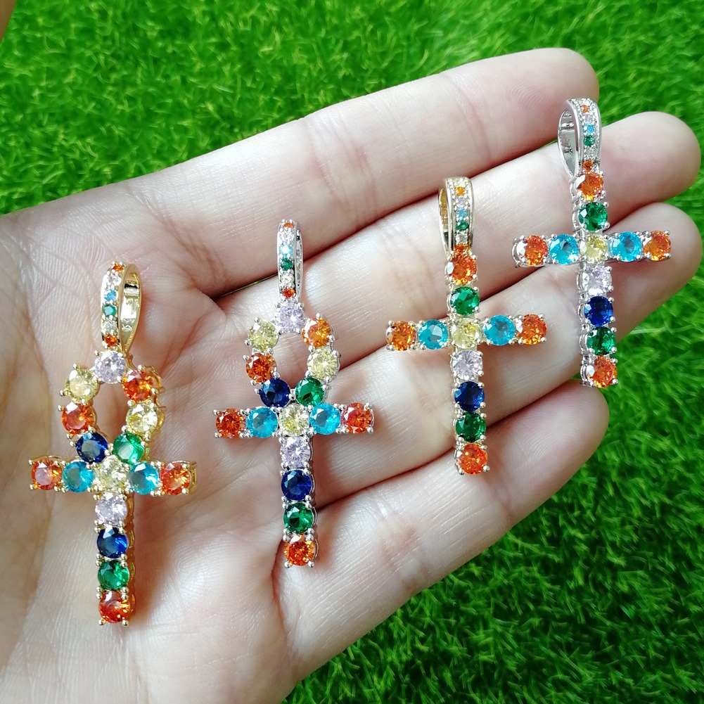 Hip hop pendant copper inlaid with zircon colored anka cross shape