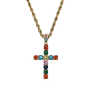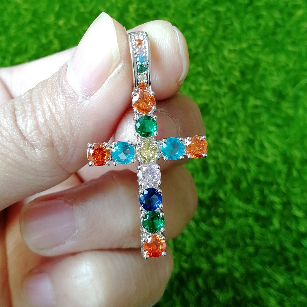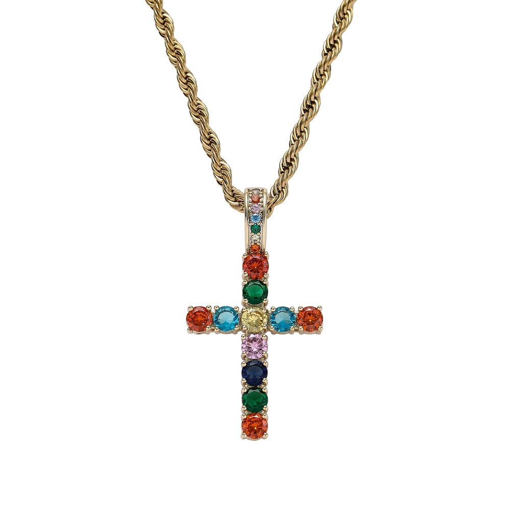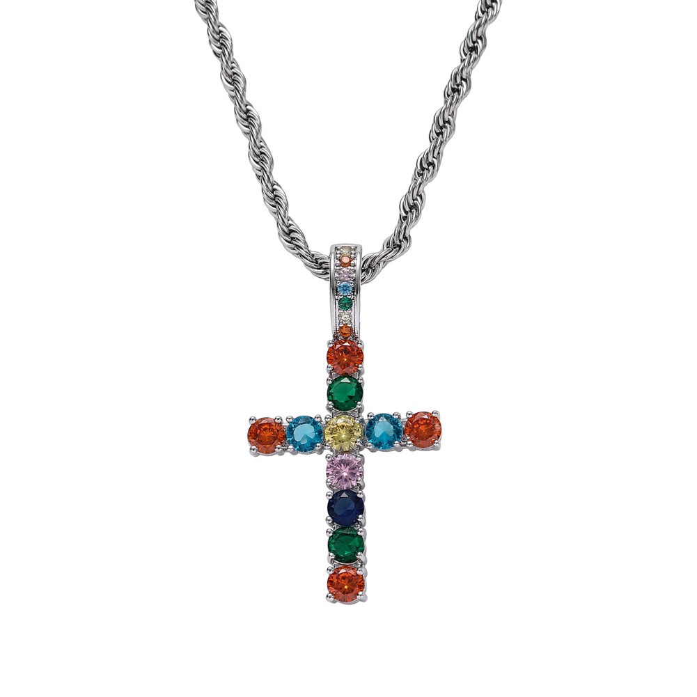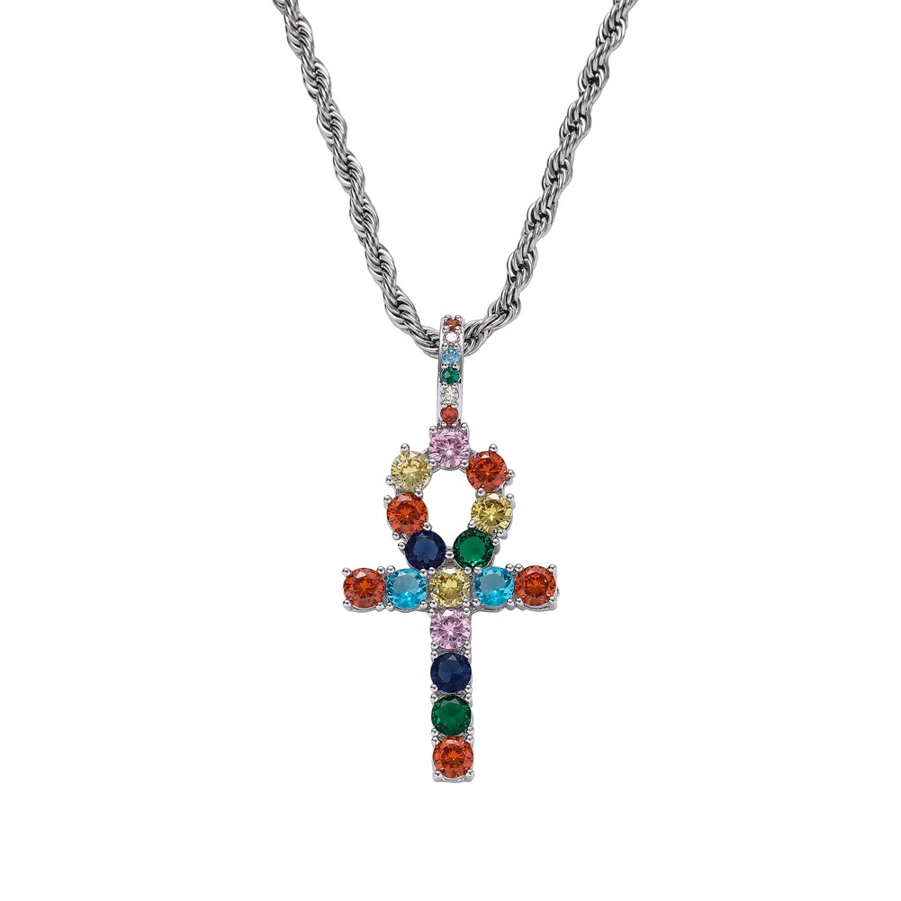 Hip hop pendant copper inlaid with zircon colored anka cross shape