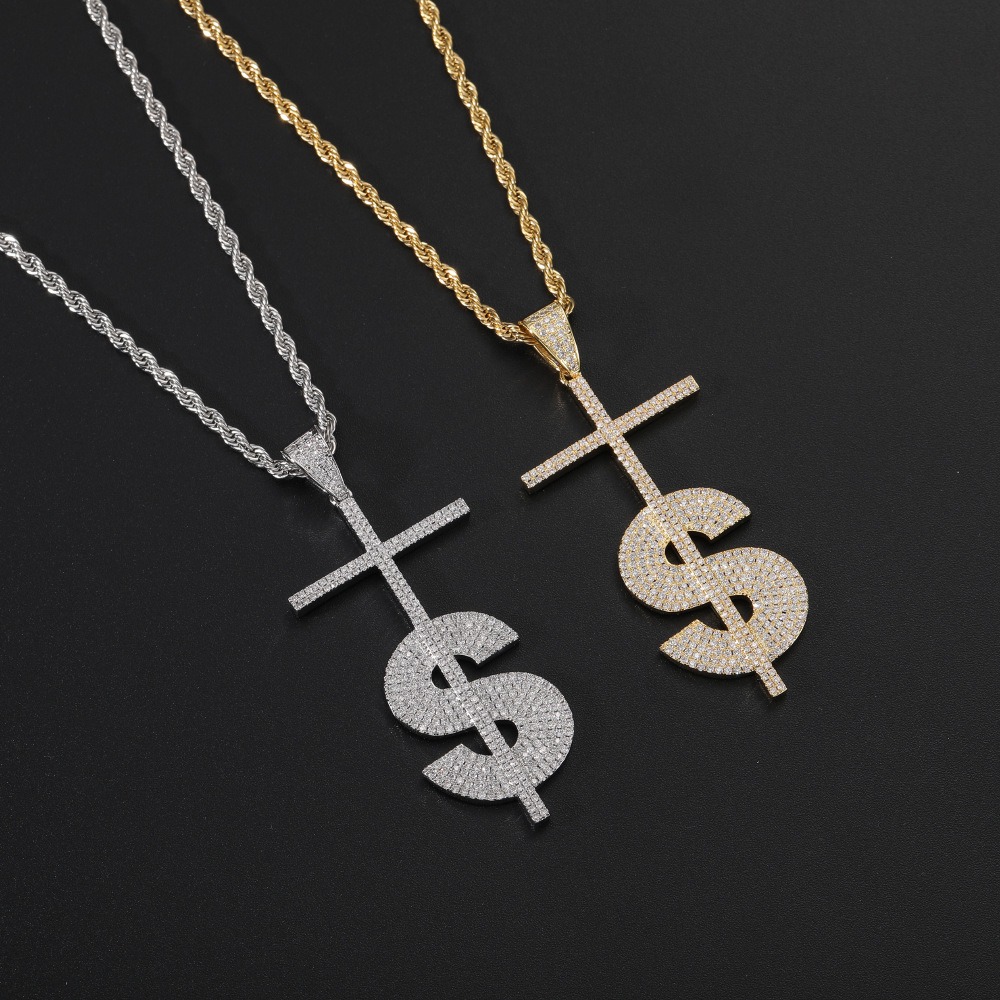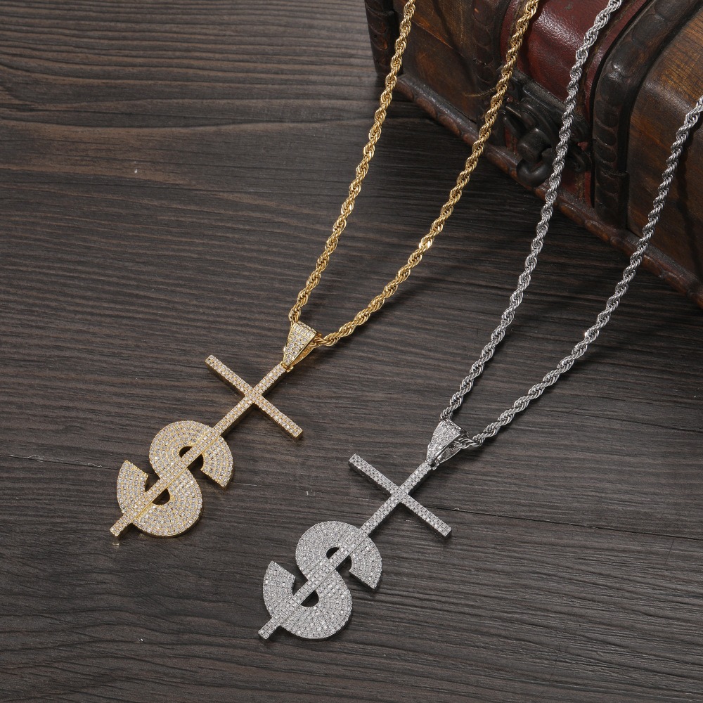 Hip Hop pendant copper inlaid with zircon $ cross shape