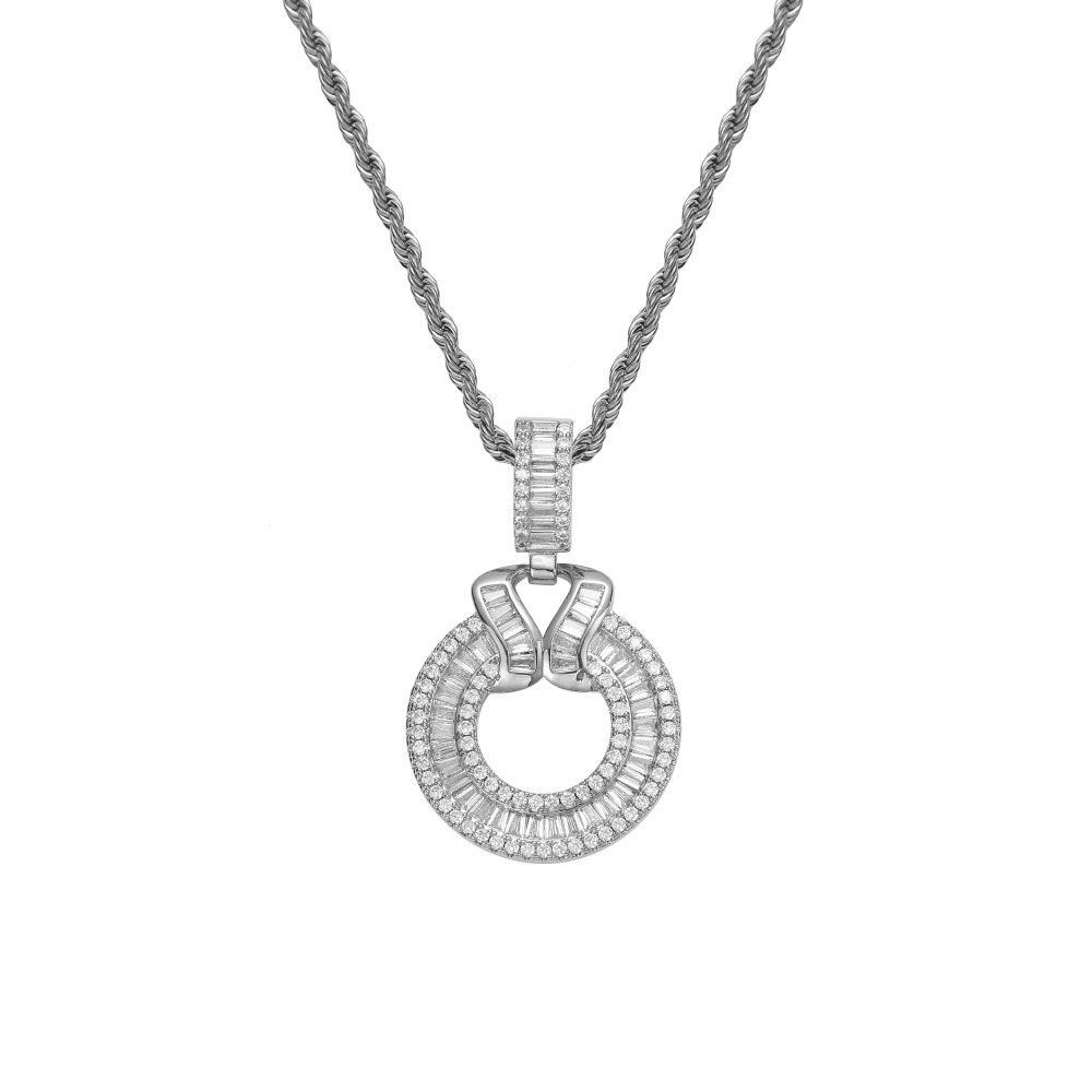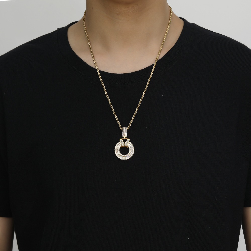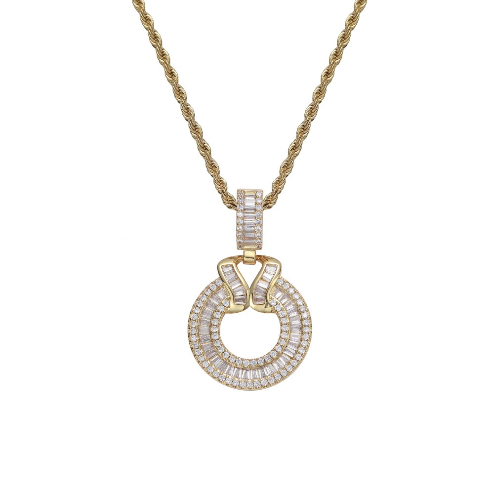 Hip hop pendant copper inlaid with zircon cut-out round shape