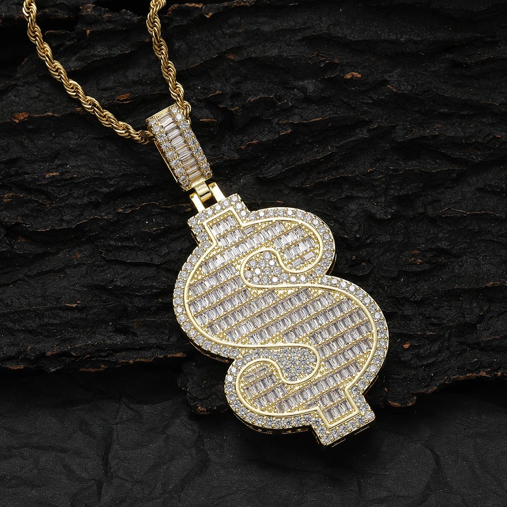 Hip Hop pendant copper inlaid with zircon $ dollar shape