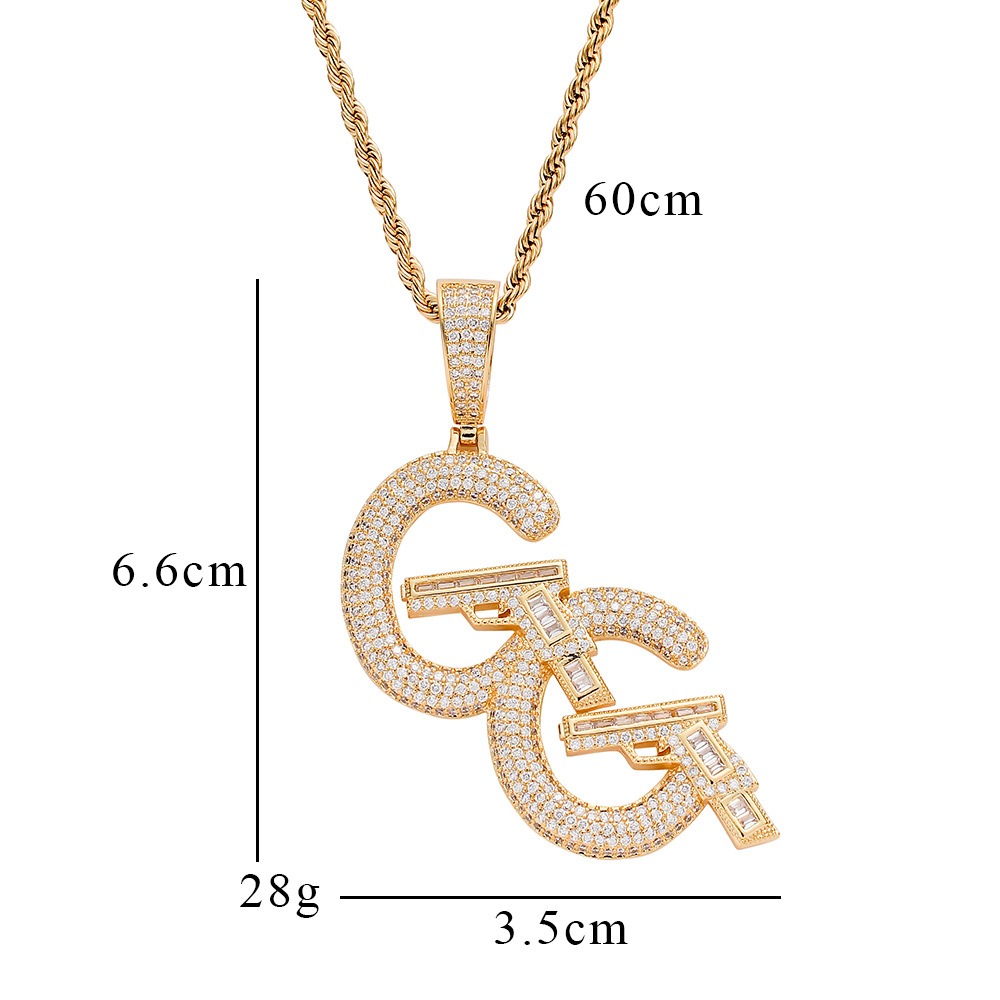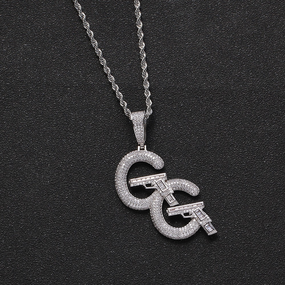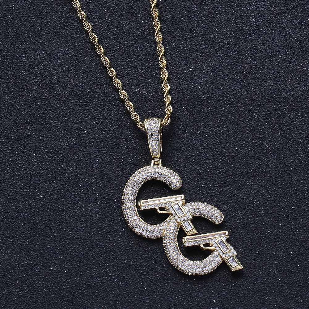 Hip hop pendant copper inlaid with zircon double C gun shape