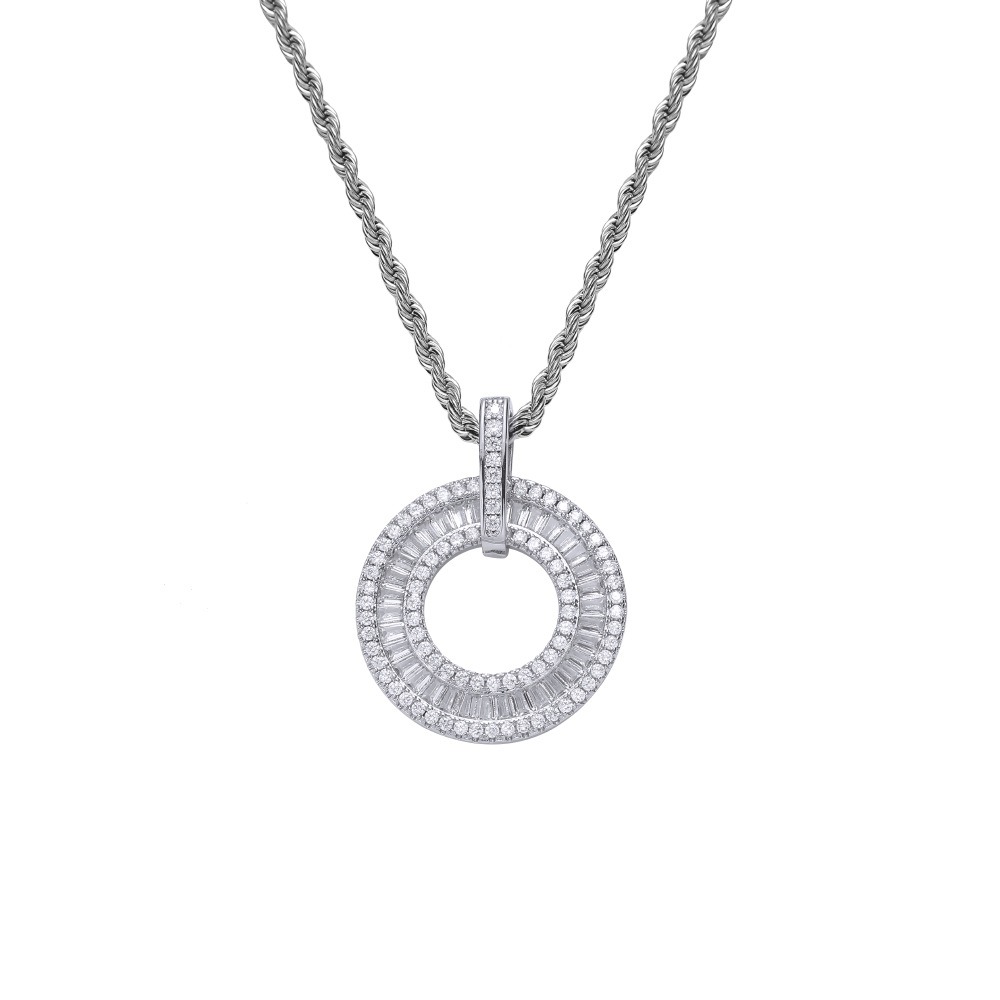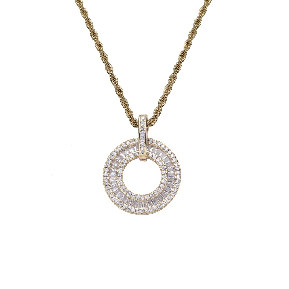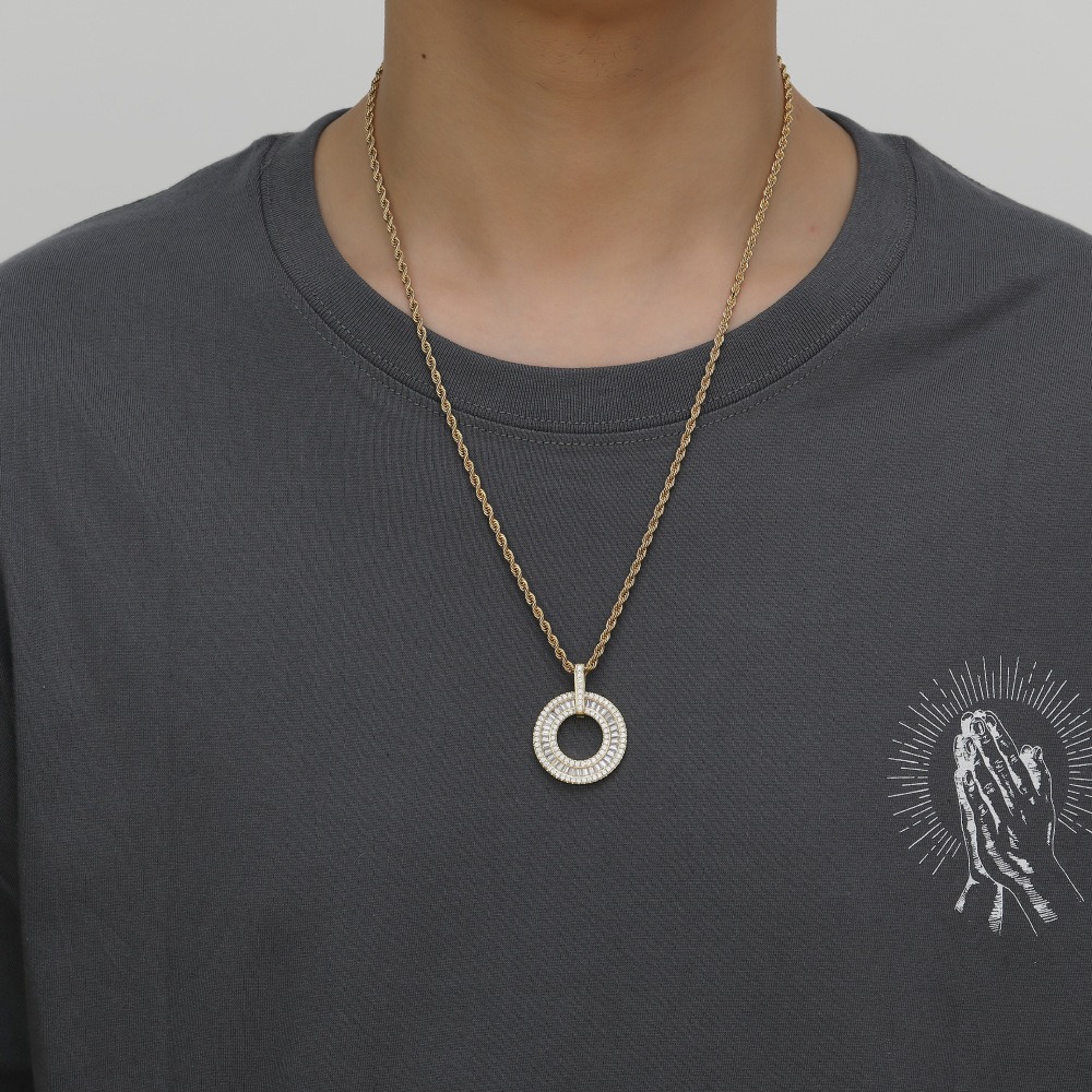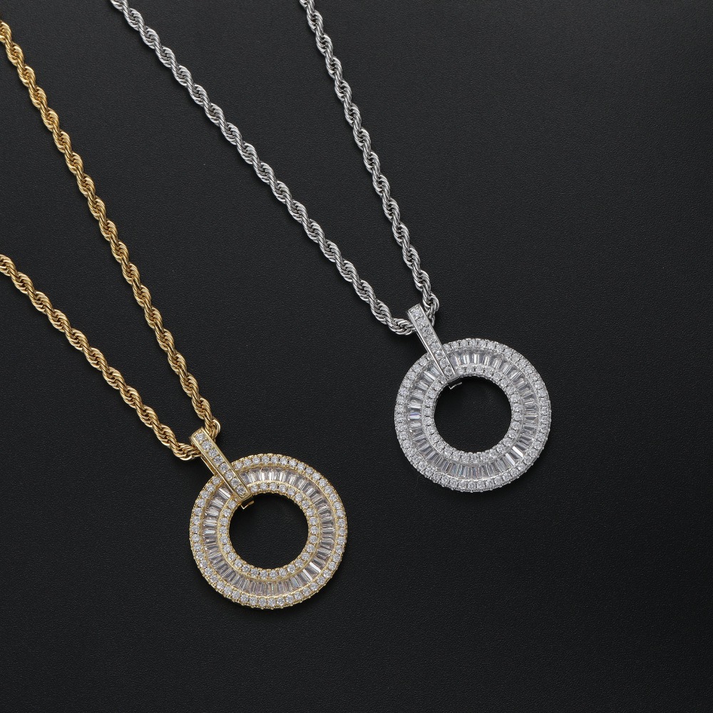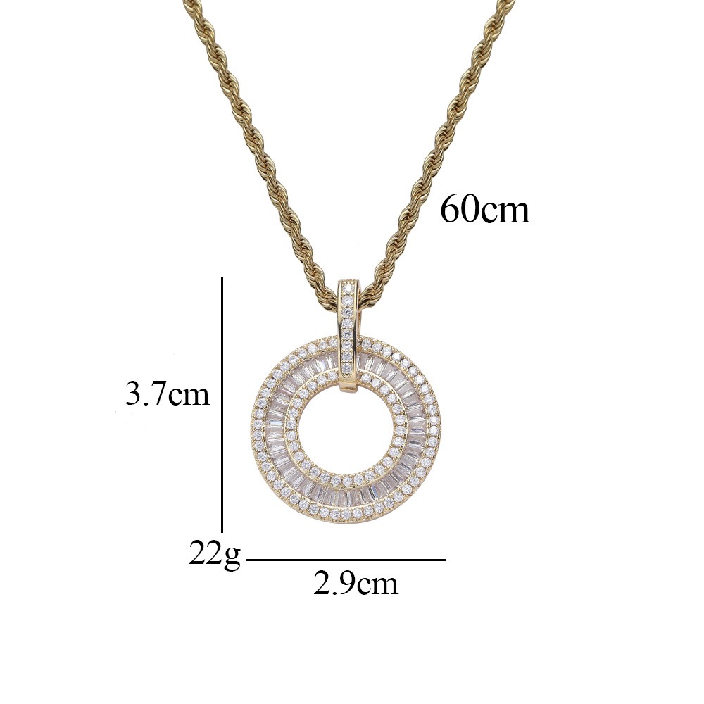 Hip hop pendant copper inlaid with zircon double circle round shape