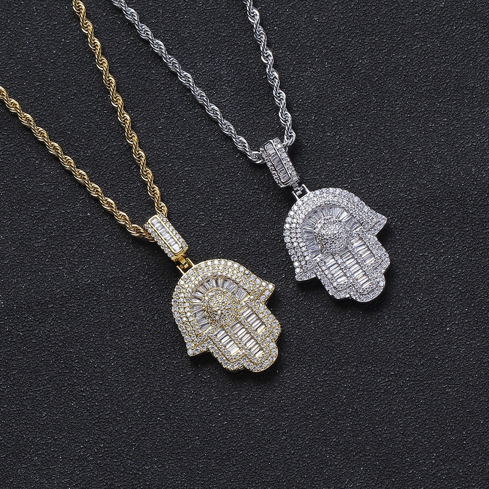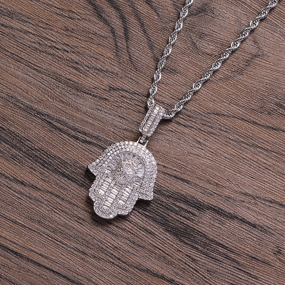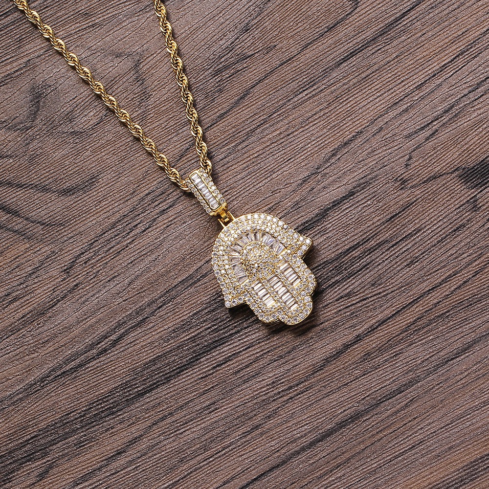 Hip Hop pendant copper inlaid with zircon Fatima shape